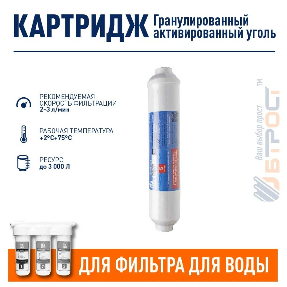 Картридж линейный постфильтр Угольный 50 для Онега-5ст и Осмо под фитинг F9019 ИТА