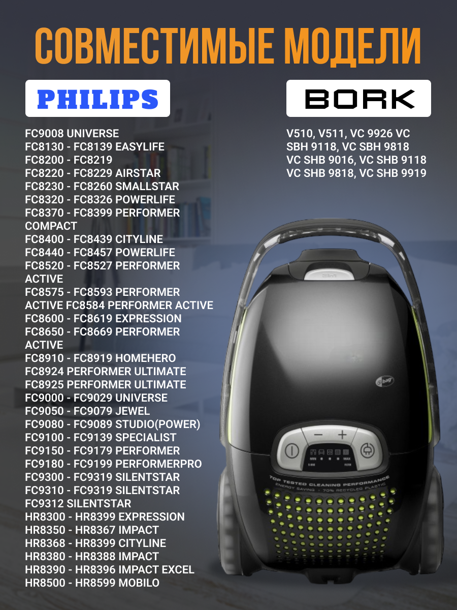 | Совместимые модели | S-bag, Bork, Electrolux |