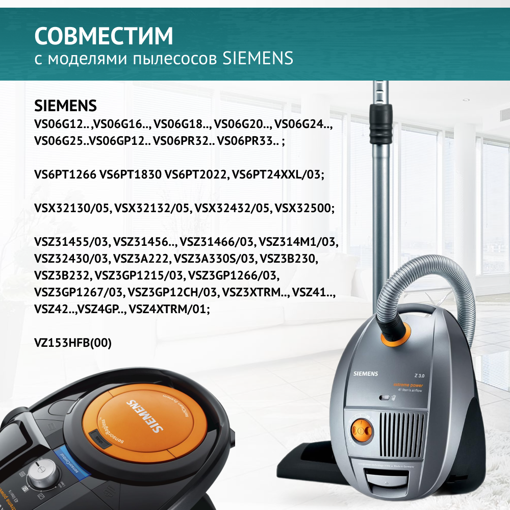 | Совместимые модели | Bosch BSGL3..., Bosch BSGL4..., Bosch BSG6..., Bosch BSG62186 Logo, Siemens VS06G…., Siemens VSZ3..., Siemens VSZ4..., Siemens VSZ41000-VSZ42499, Siemens VSZ42230, Siemens VSZ 42230, Siemens VSZ42232 |
