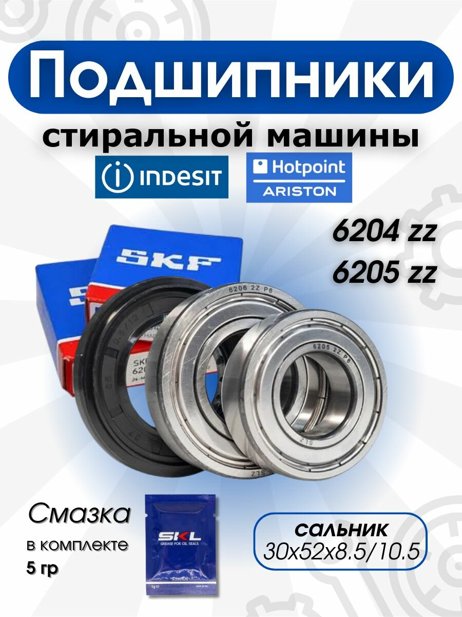 Подшипники стиральных машин Hotpoint-Ariston 6204 6205 30x52x8.5/10.5 / ремкомплект бака для стиральной машины Хотпоинт Аристон интересное: