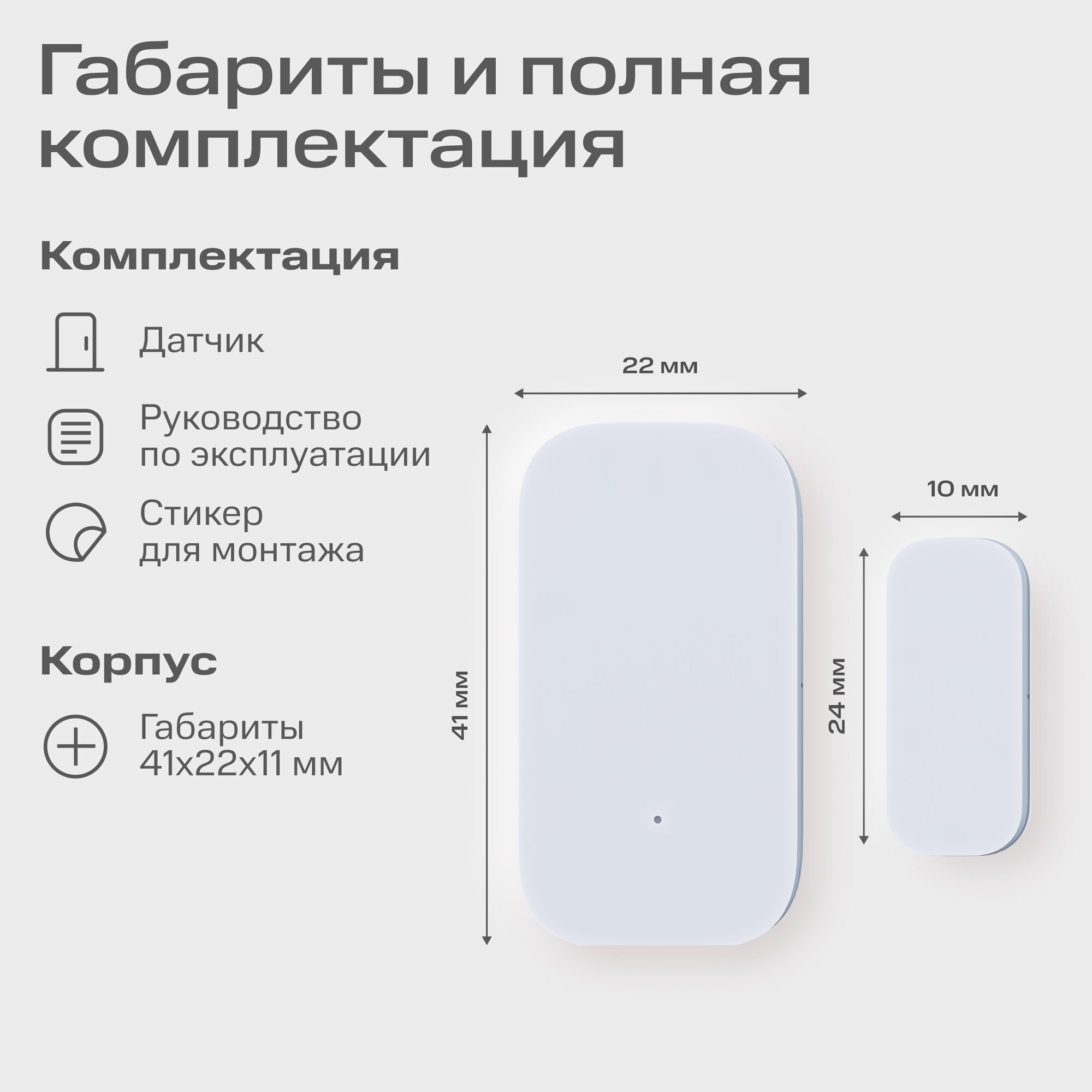 | Подробная комплектация | Умный датчик открытия дверей1 шт. Умный датчик движения 1шт. Умный хаб 1 шт. |