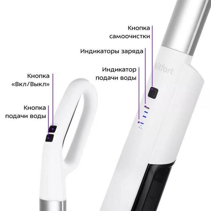Электрошвабра Kitfort KT-5174, беспроводная, 40 Вт, 420/150 мл, бело-чёрная интересное: