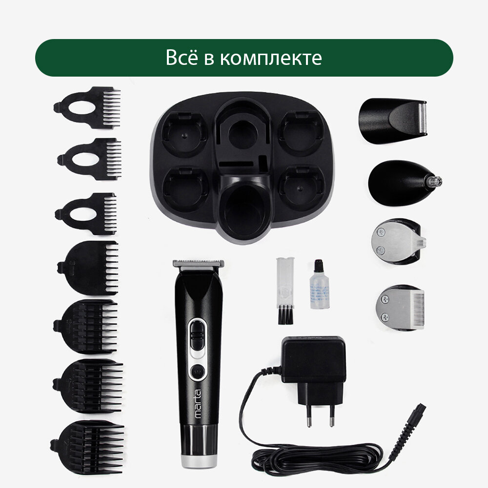 Машинка для стрижки 5 в 1 MARTA MT-2225 черный жемчуг интересное: