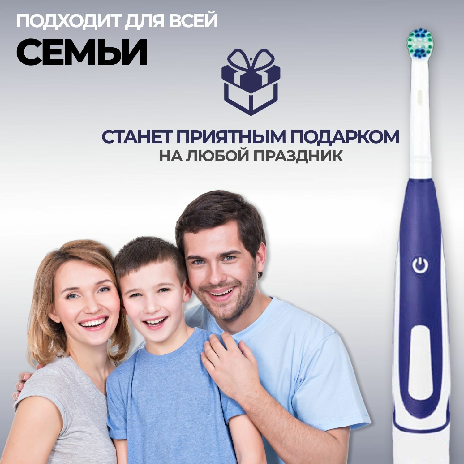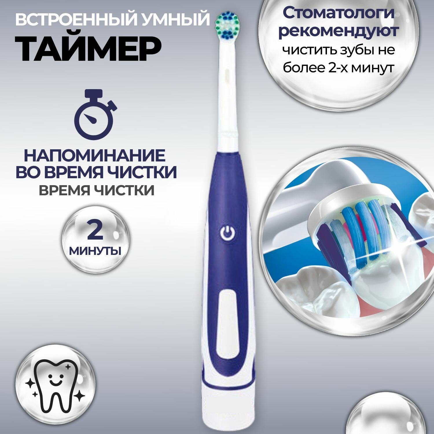 Электрическая зубная щетка взрослая Biksi, с 2 насадками, от 2 батареек АА, синий