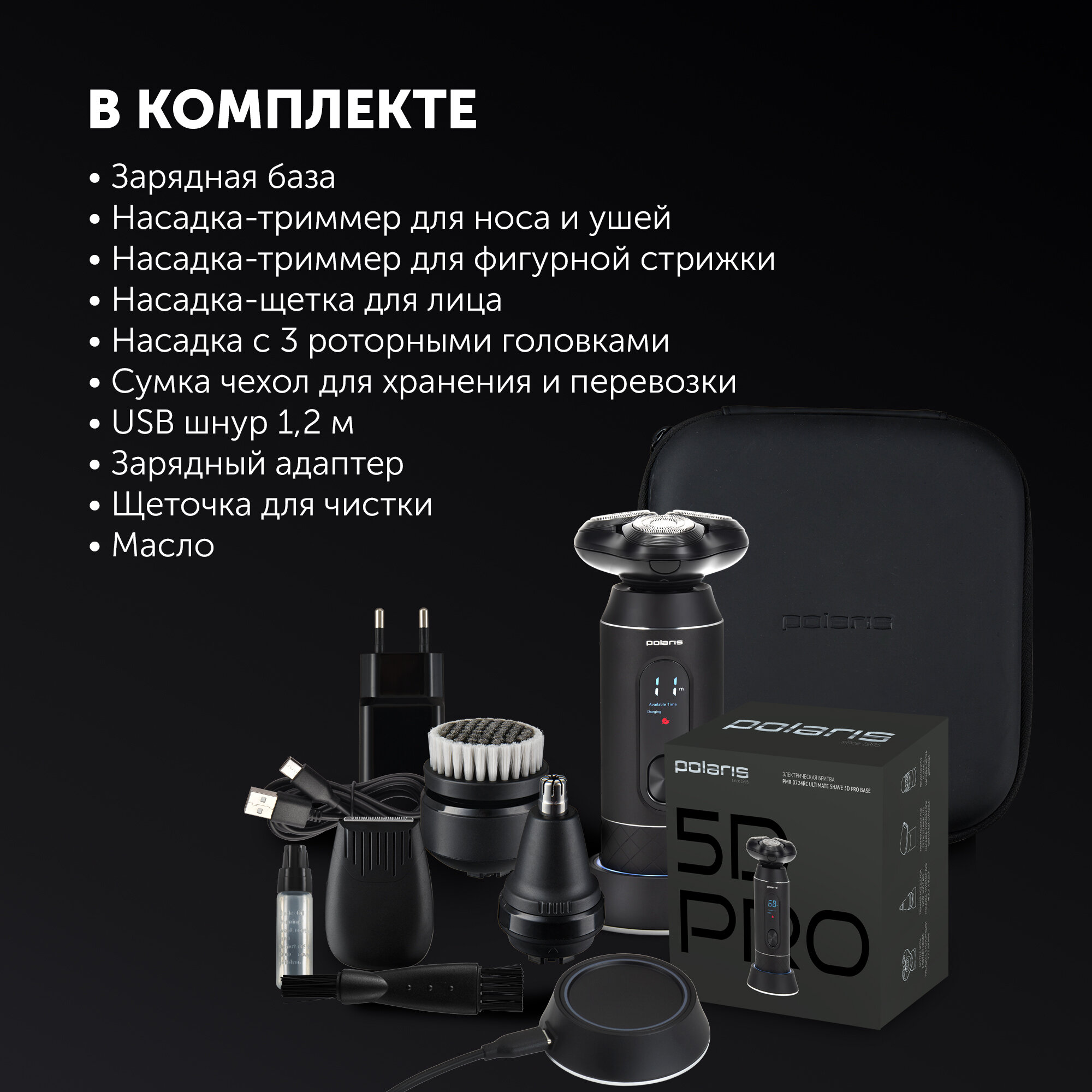 Электробритва Polaris PMR 0724RC Ultimate shave 5D PRO base, черный