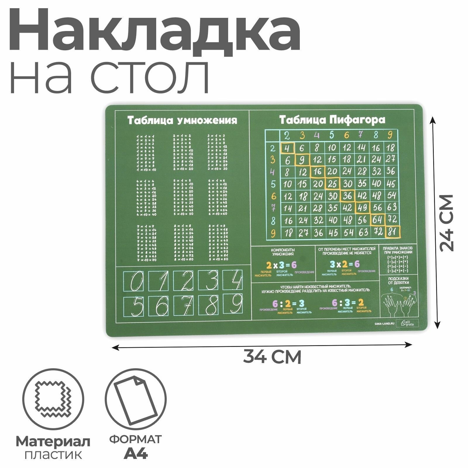 Накладка на стол пластиковая А4 (345 x 245 мм) 500 мкм, Обучающая, Calligrata Таблица Пифагора , интересное: