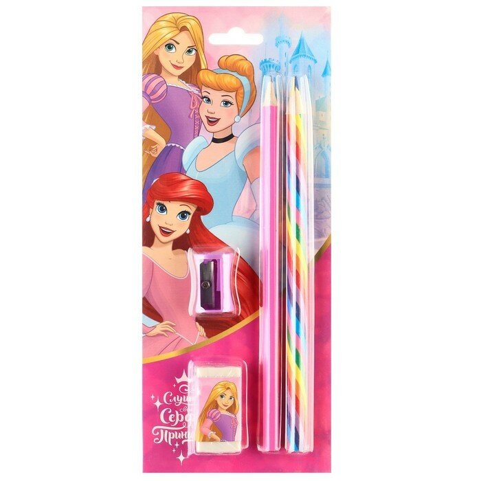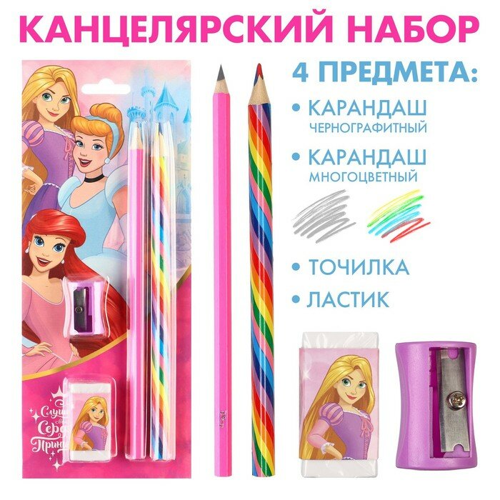 Купить Набор канцелярский, точилка, ластик, карандаш, Принцессы цвет микс
