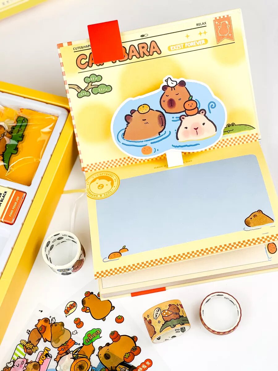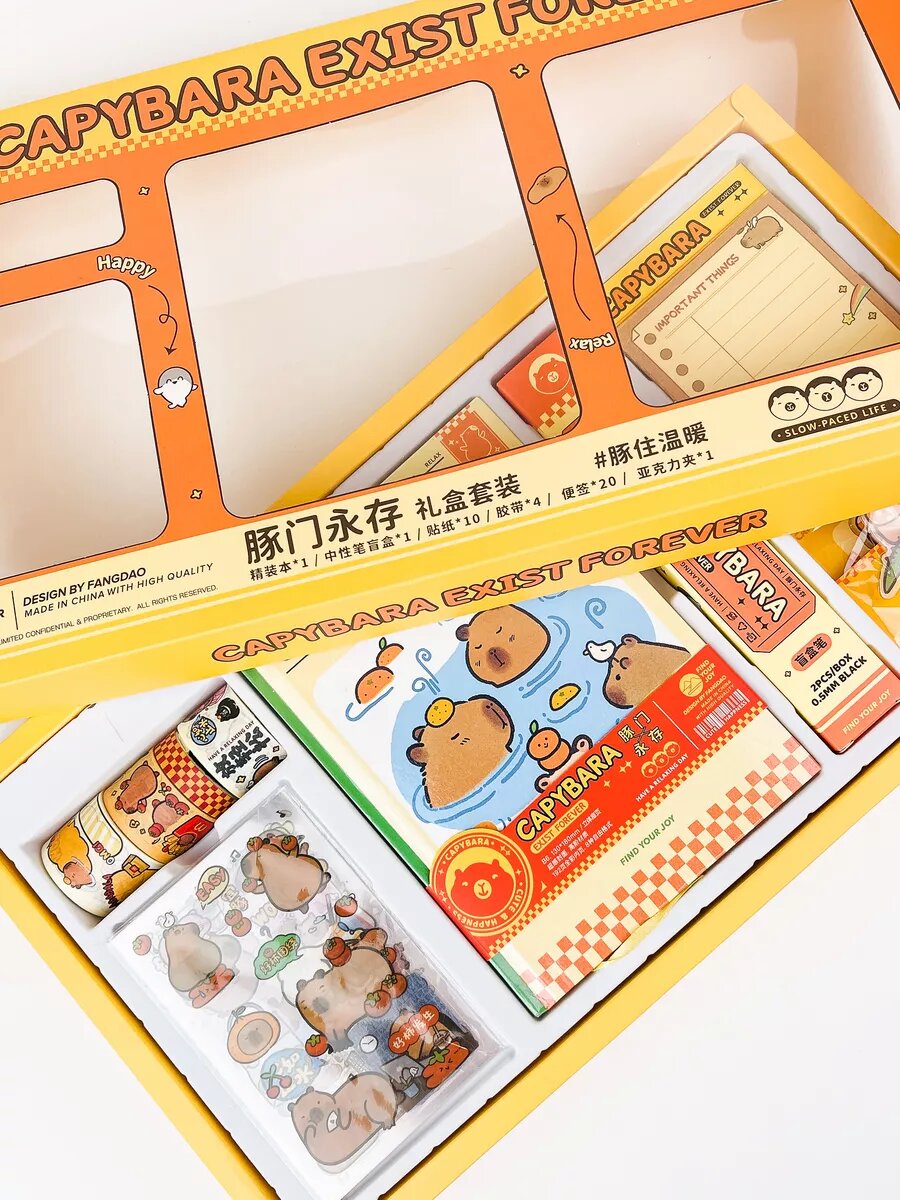 Подарочный набор канцелярии с капибарами интересное: