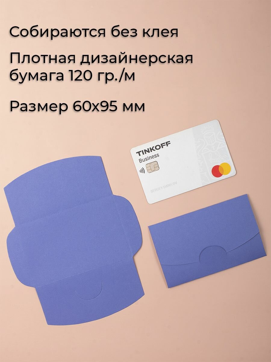 Конверт цветной бумажный мини самосборный 6х9.5см/ Набор мини конвертов каролина блю 50 шт.