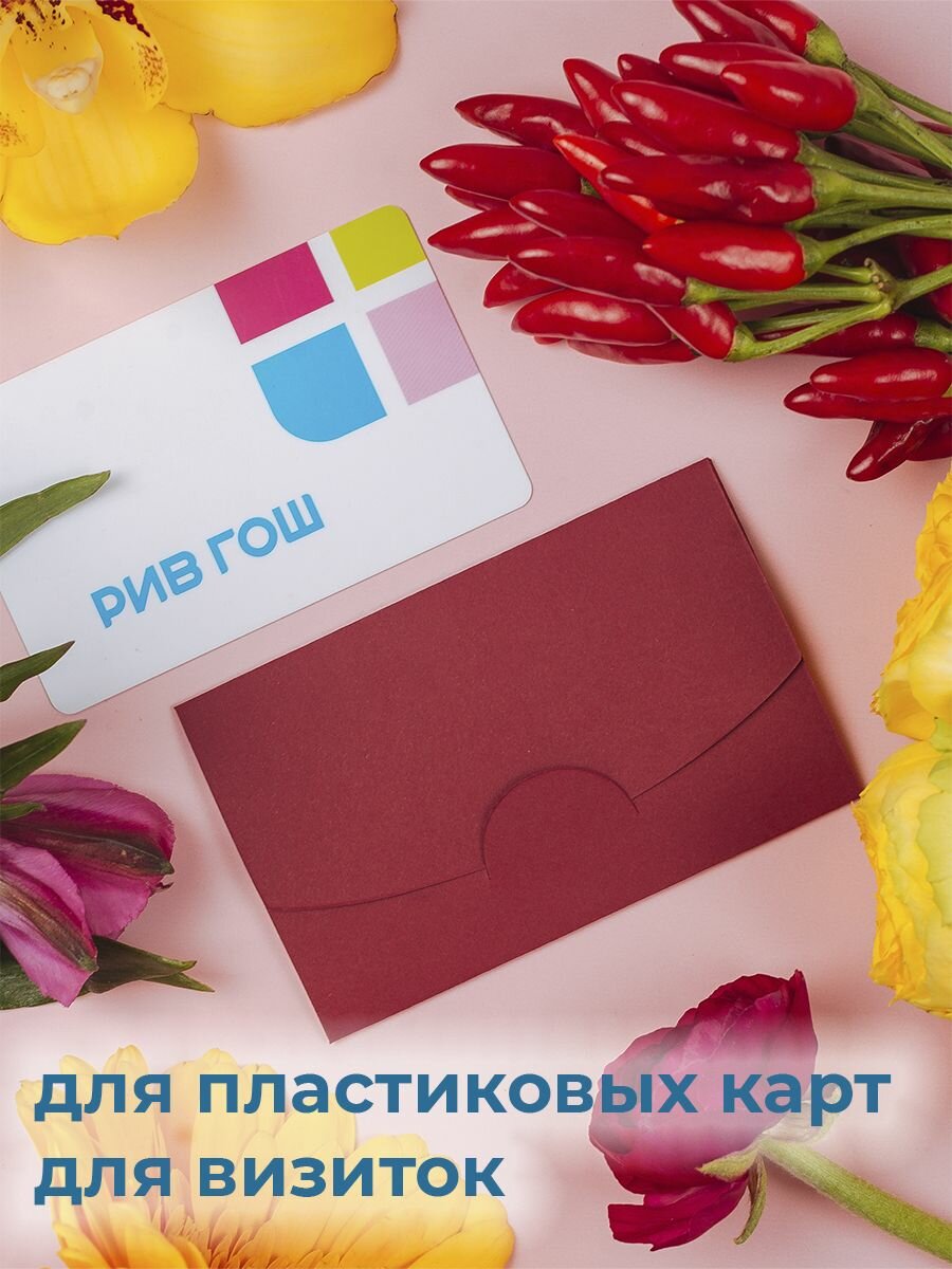 Конверт цветной бумажный мини самосборный 6х9.5см/ Набор мини конвертов бархатный красный 50 шт.