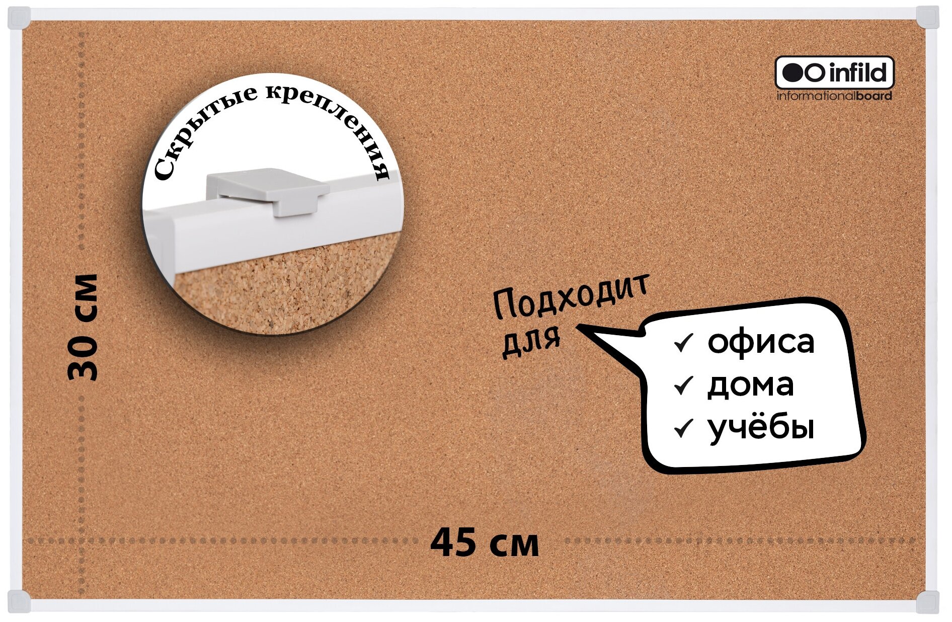 Доска с пробковым покрытием 30х45см в ПВХ профиле, INFILD интересное: