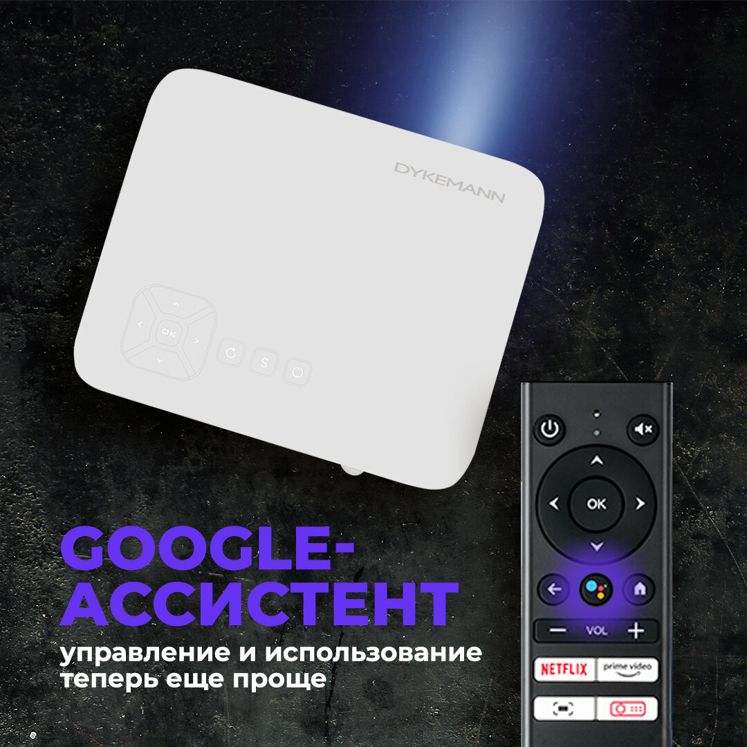 Проектор со Smart TV-приставкой для фильмов и игр Full HD, Андроид 10.0, Android, поддержка 4K, HDMI, Wifi, Bluetooth, пульт, кинопроектор для дома Dykemann Sternenschein G-51 интересное: