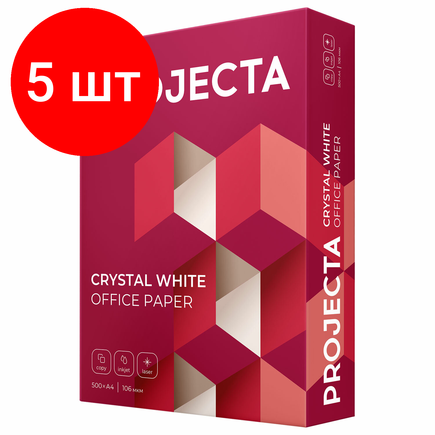 Купить Комплект 5 шт, Бумага офисная А4, 80 г/м2, 500 л., марка А, PROJECTA, 168% (CIE)