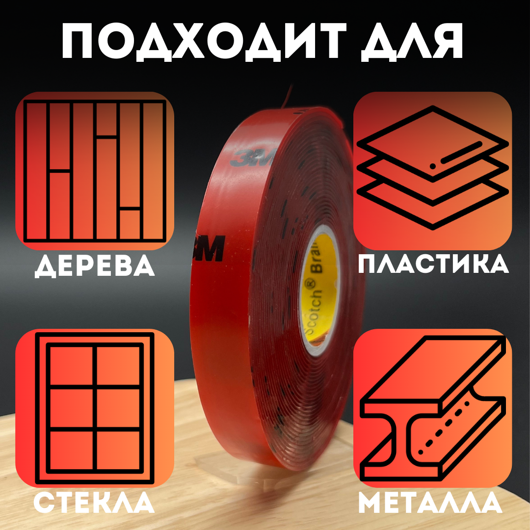 Двусторонний скотч 3M, 12x5 м, двусторонний, прозрачный, красный