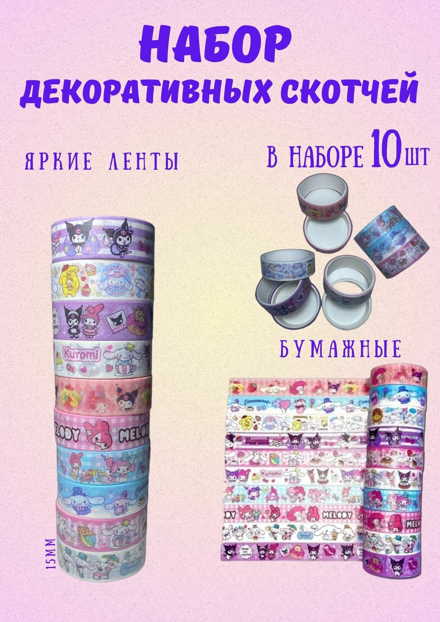 Декоративный скотч для скрапбукинга, клейкая лента в наборе 10шт интересное: