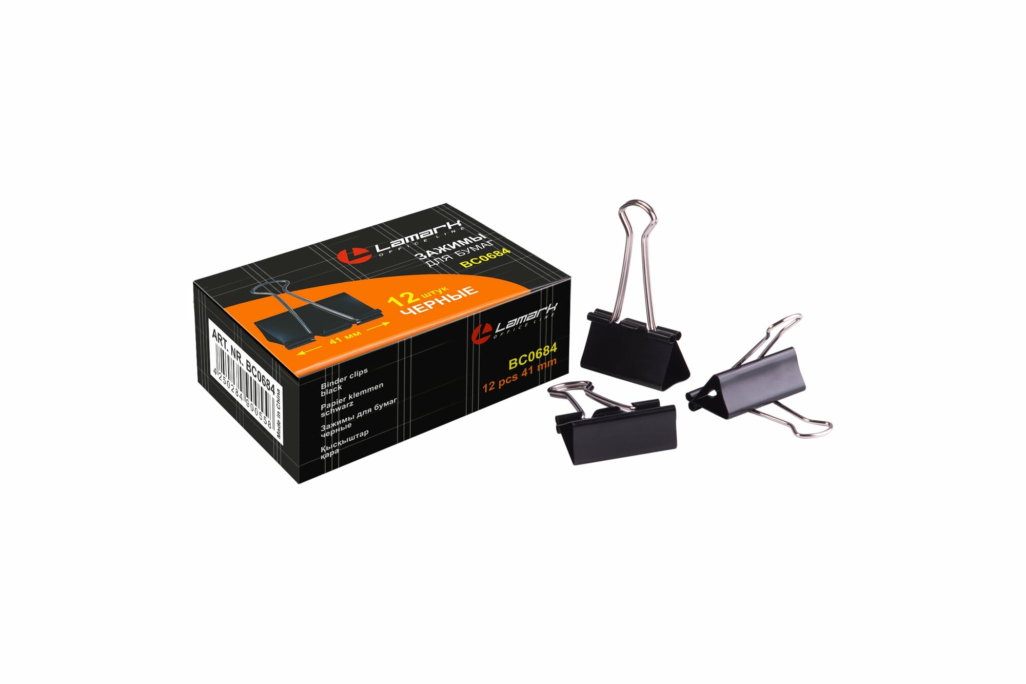 Купить Зажимы канцелярские для бумаги, LAMARK 684, 4,1 см, черные, 12 шт