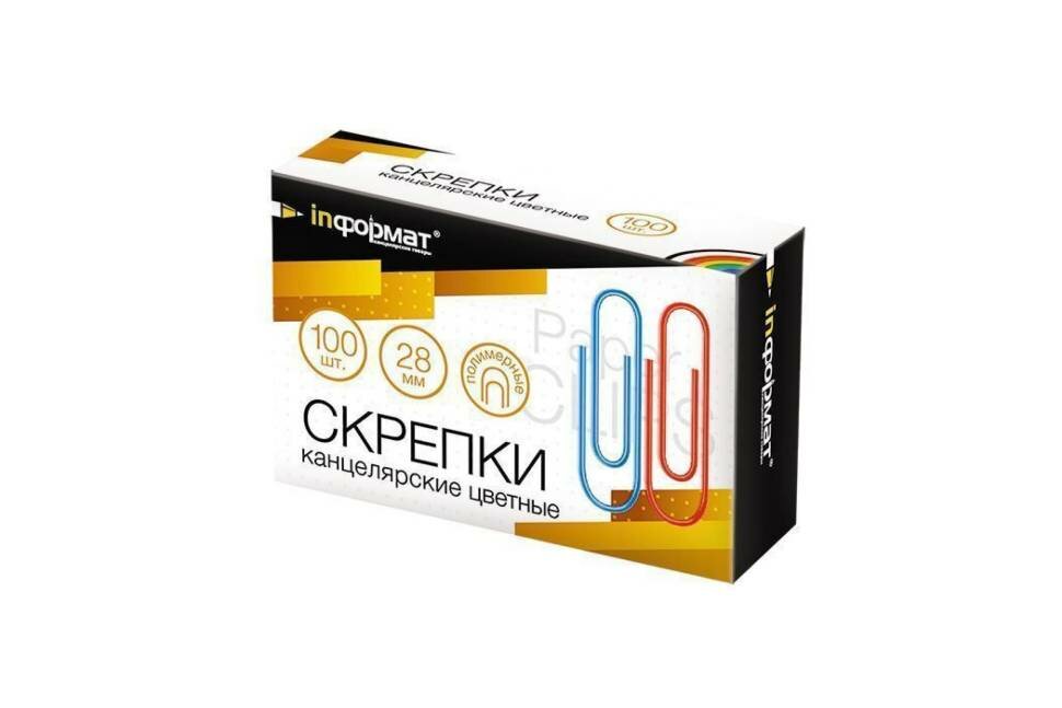 Скрепки inформат (28мм, цветное виниловое покрытие) картонная упаковка, 100шт.