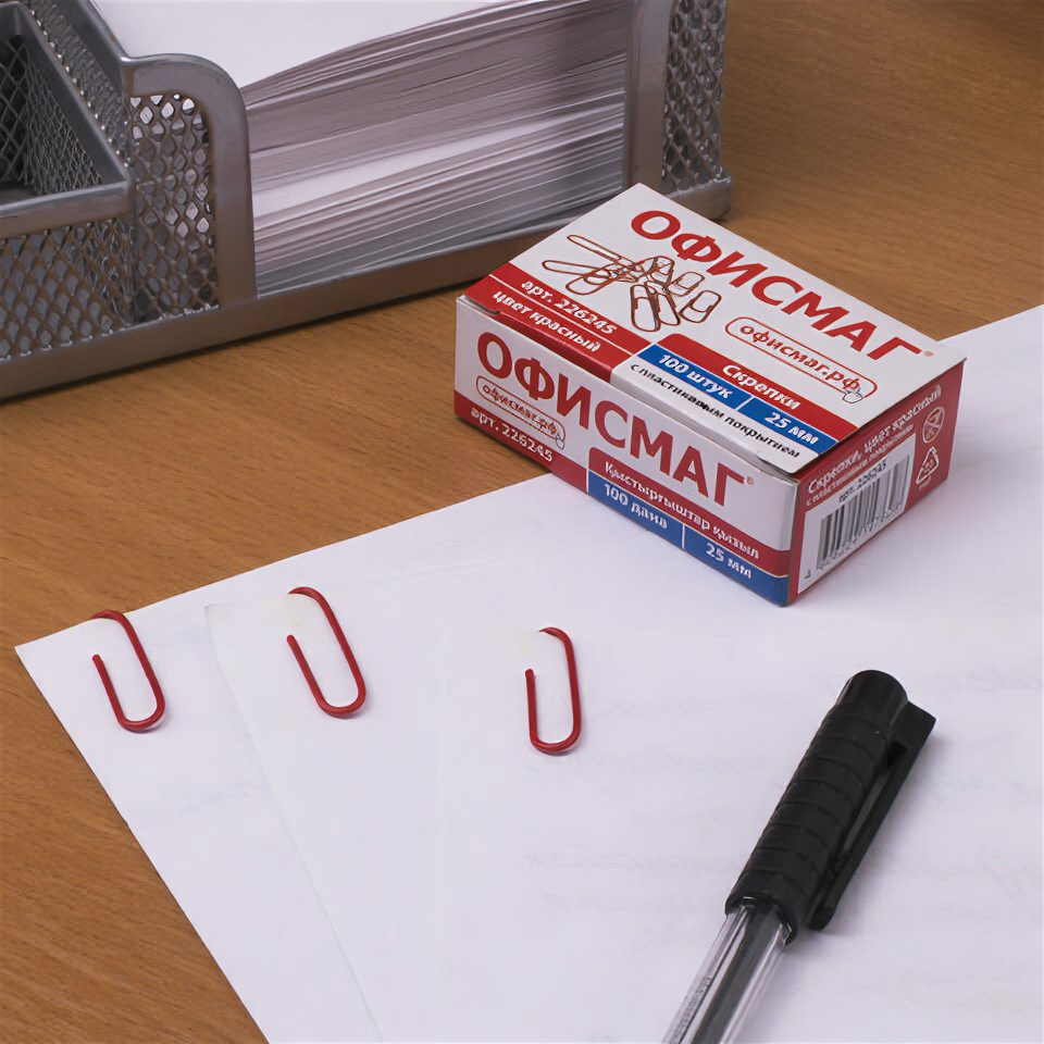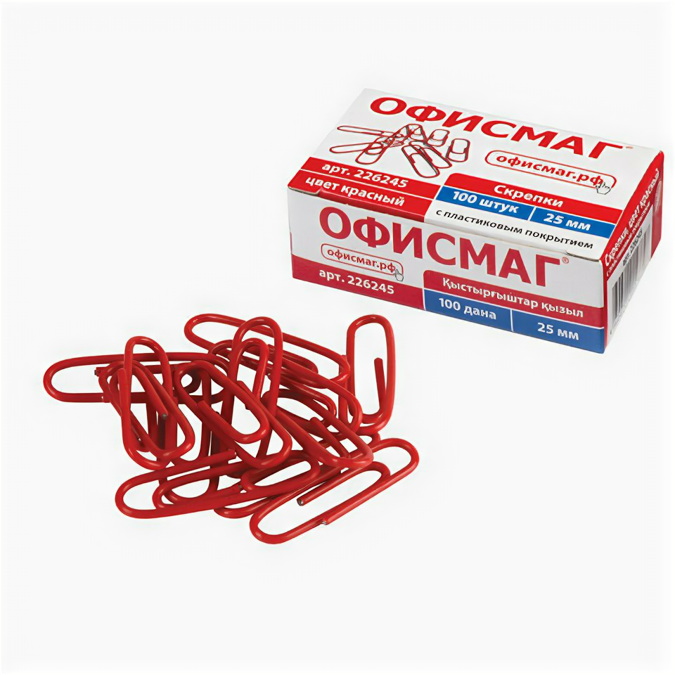 Скрепки офисмаг, 25 мм, красные, 100 шт., в картонной коробке, 226245, 6 штук интересное: