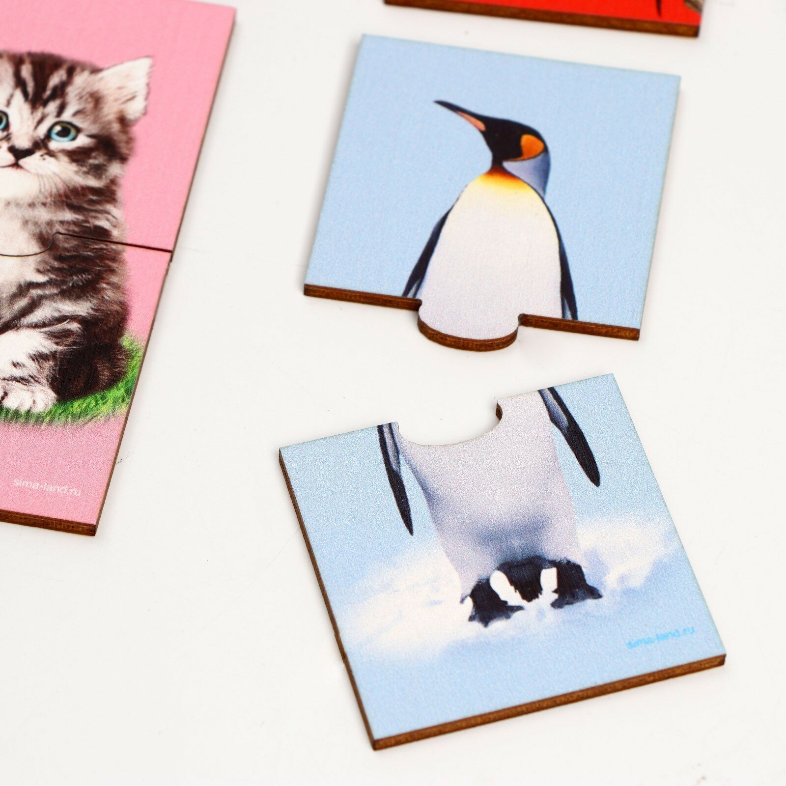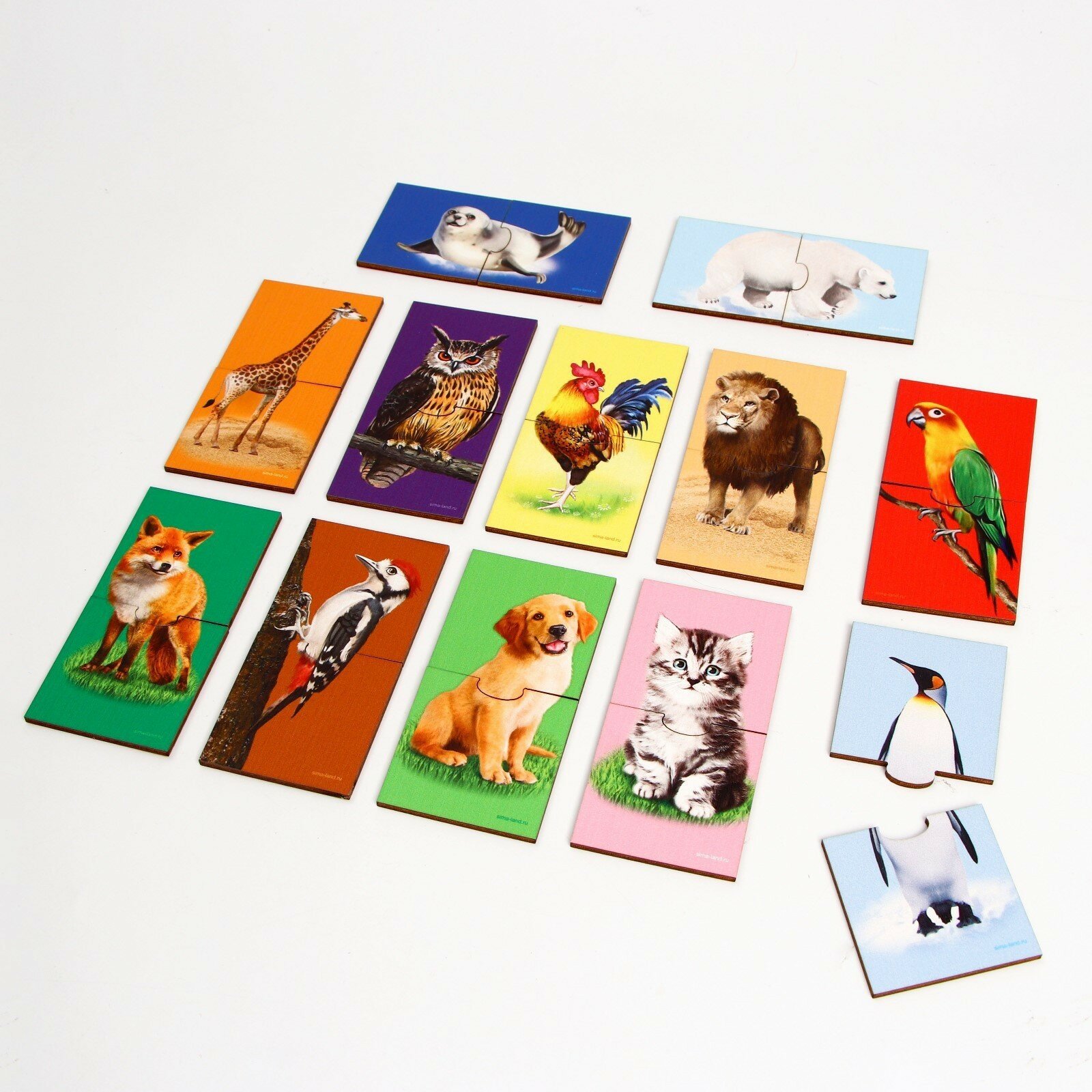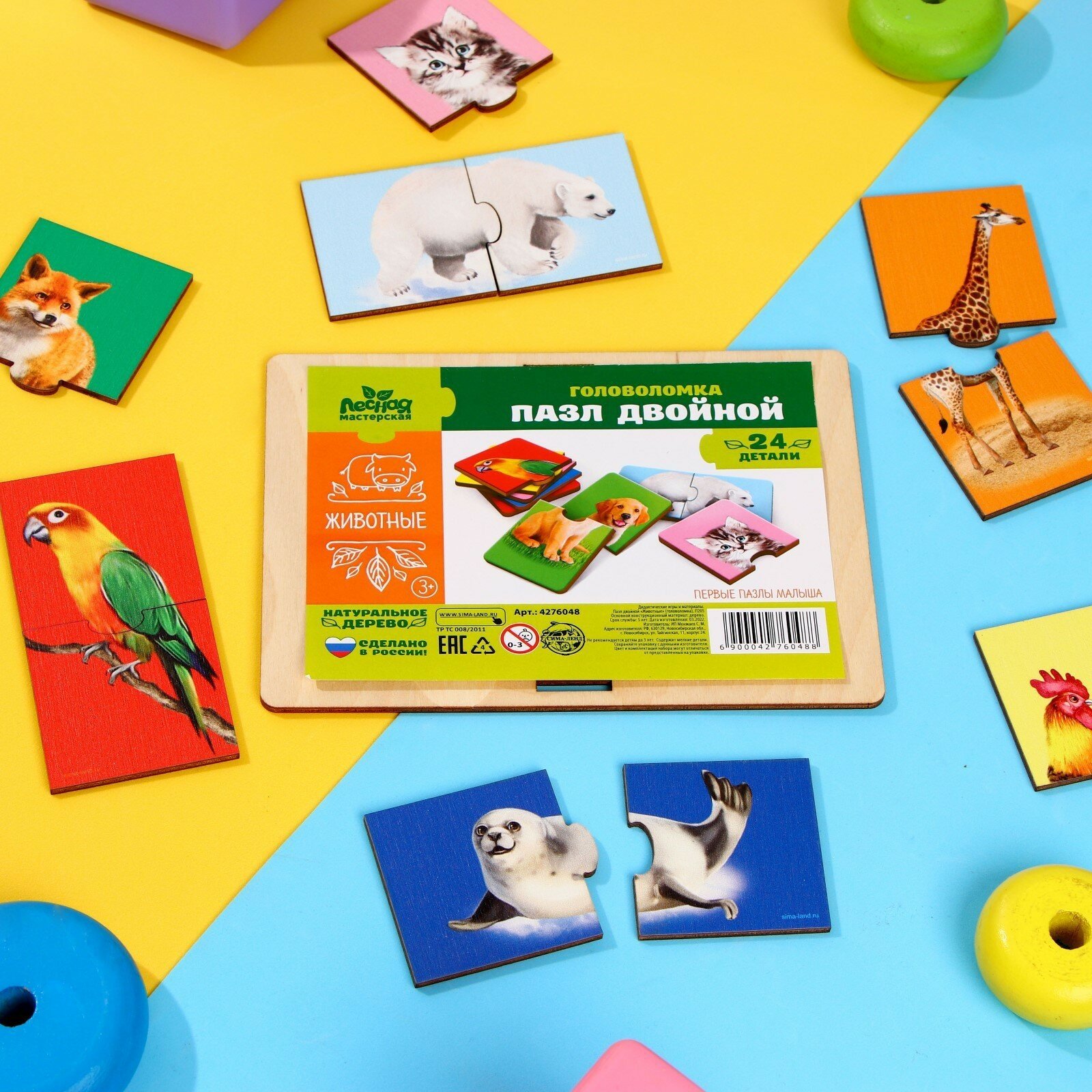 Головоломка "Животные", пазл двойной, 12 пазлов, 24 детали, для детей и малышей