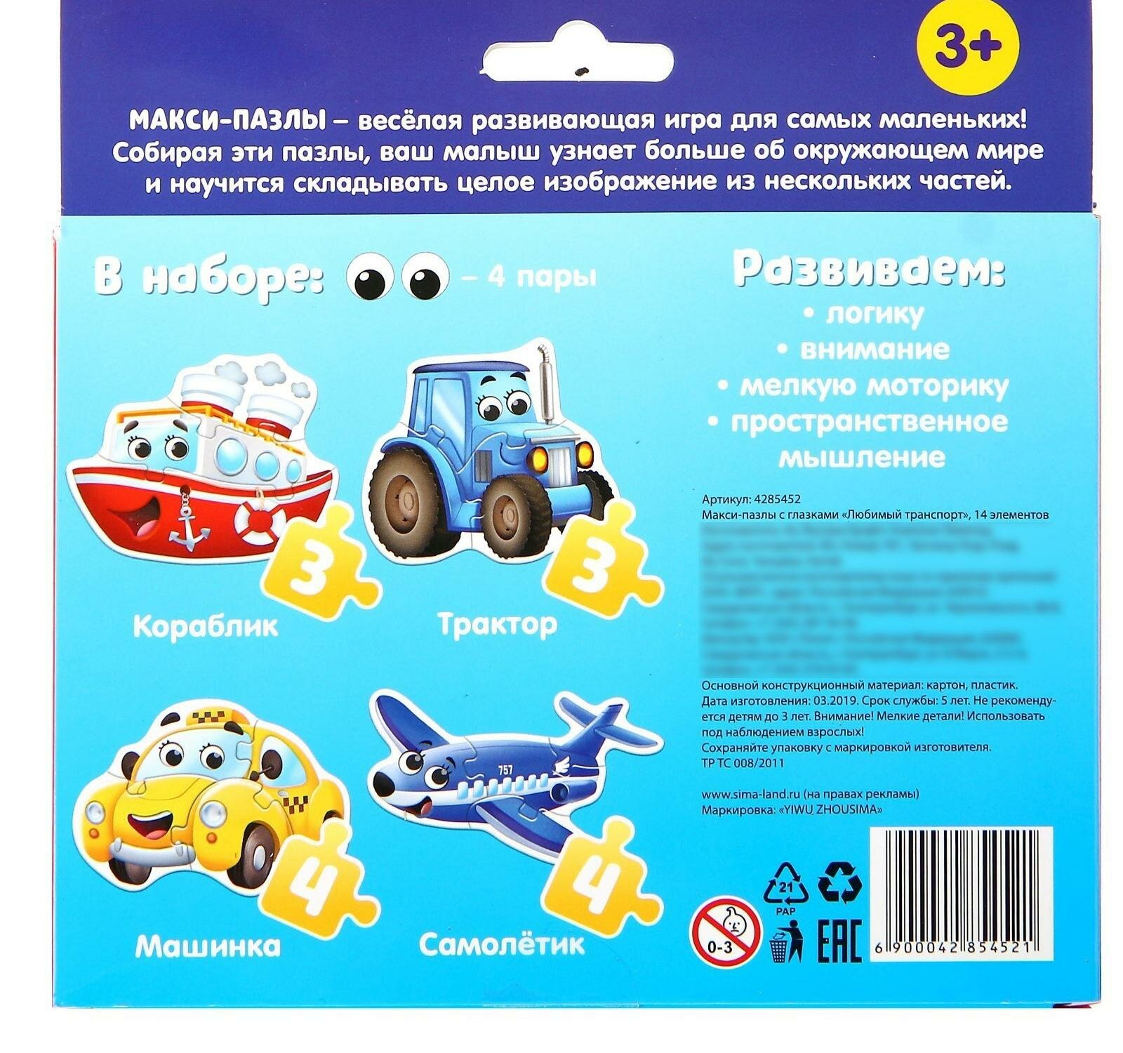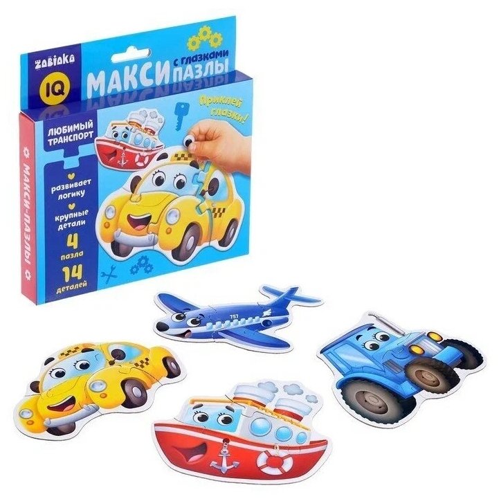Макси-пазлы с глазками "Любимый транспорт", 4 пазла, 14 крупных деталей, Puzzle Time