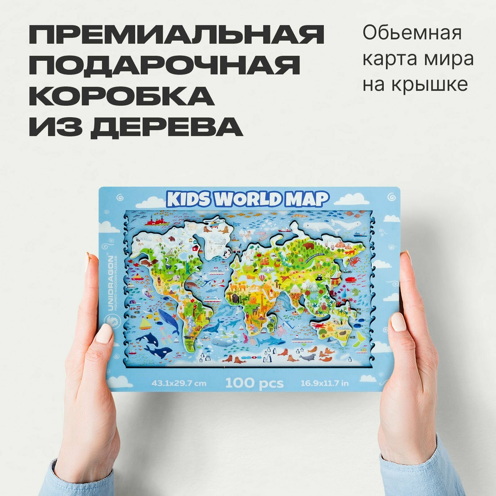 Деревянный пазл для детей UNIDRAGON Детская Карта Мира 43.1 x 29.7 см, 100 деталей интересное:
