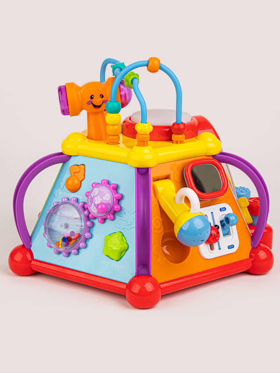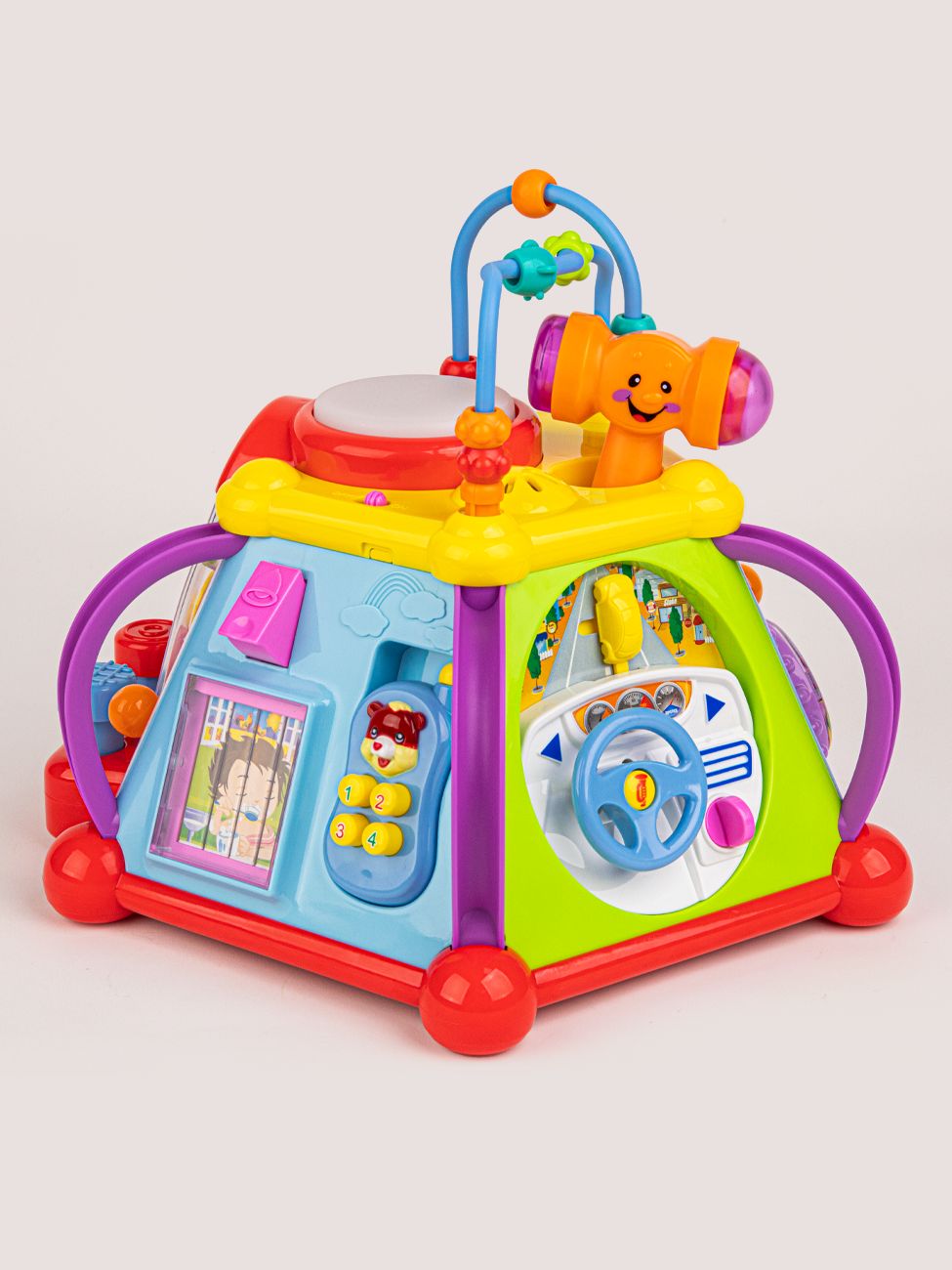 | Дополнительная информация | в игровом центре есть молоточек, музыкальный барабанчик, шарманка, мерцающие огоньки, выбор мелодии, звонок, телефон-пищалка, мини тв, трещетка, микрофон, руль, гудок, ключ зажигания, подвижная машинка; упаковка - коробка, размер упаковки 30 х 18 х 28,5 см |
