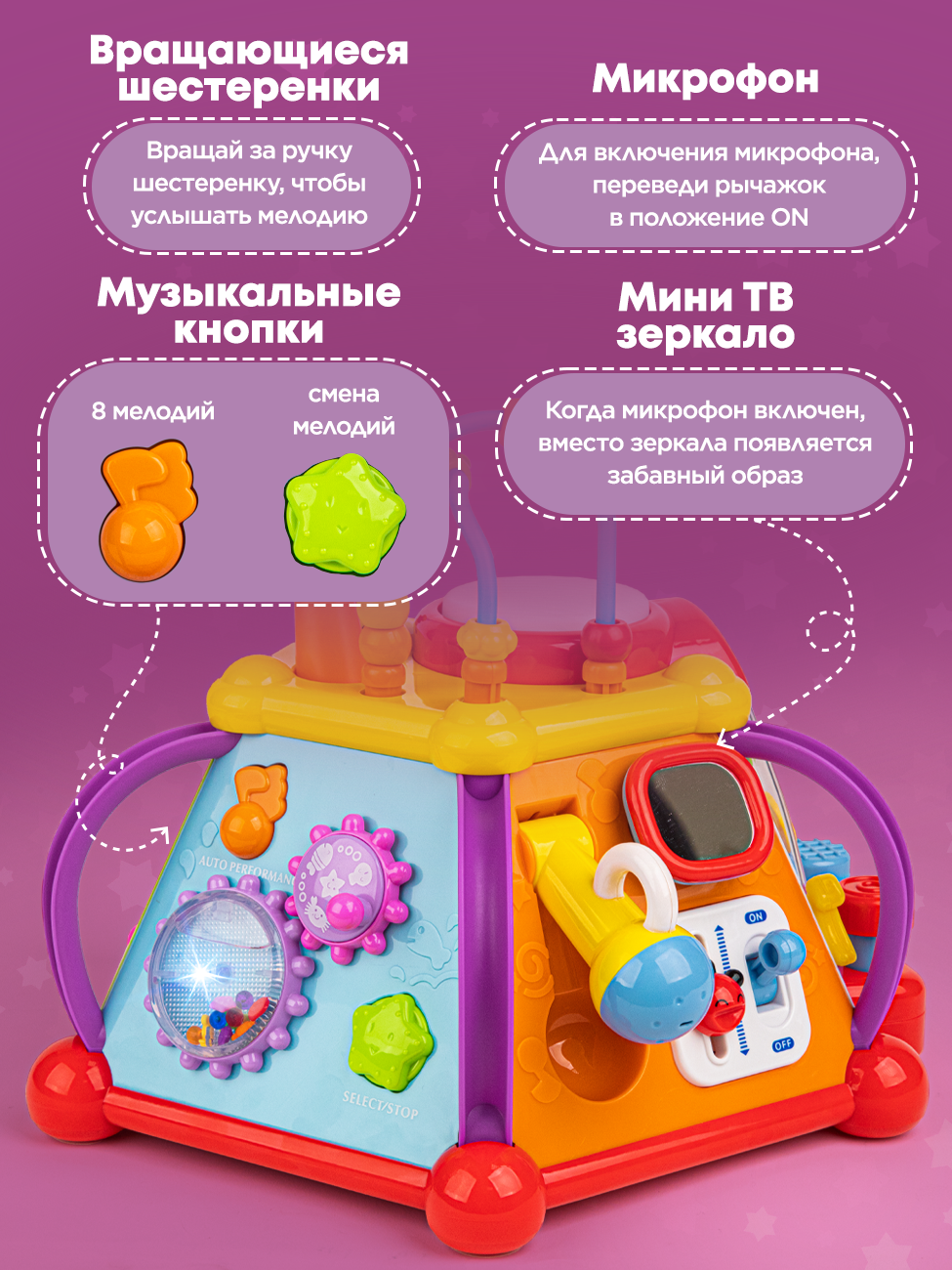 | Развивающие функции | изучение геометрических фигур / изучение цветов / логика и мышление / моторика и ловкость / музыкальный слух и чувство ритма / счет и математика |