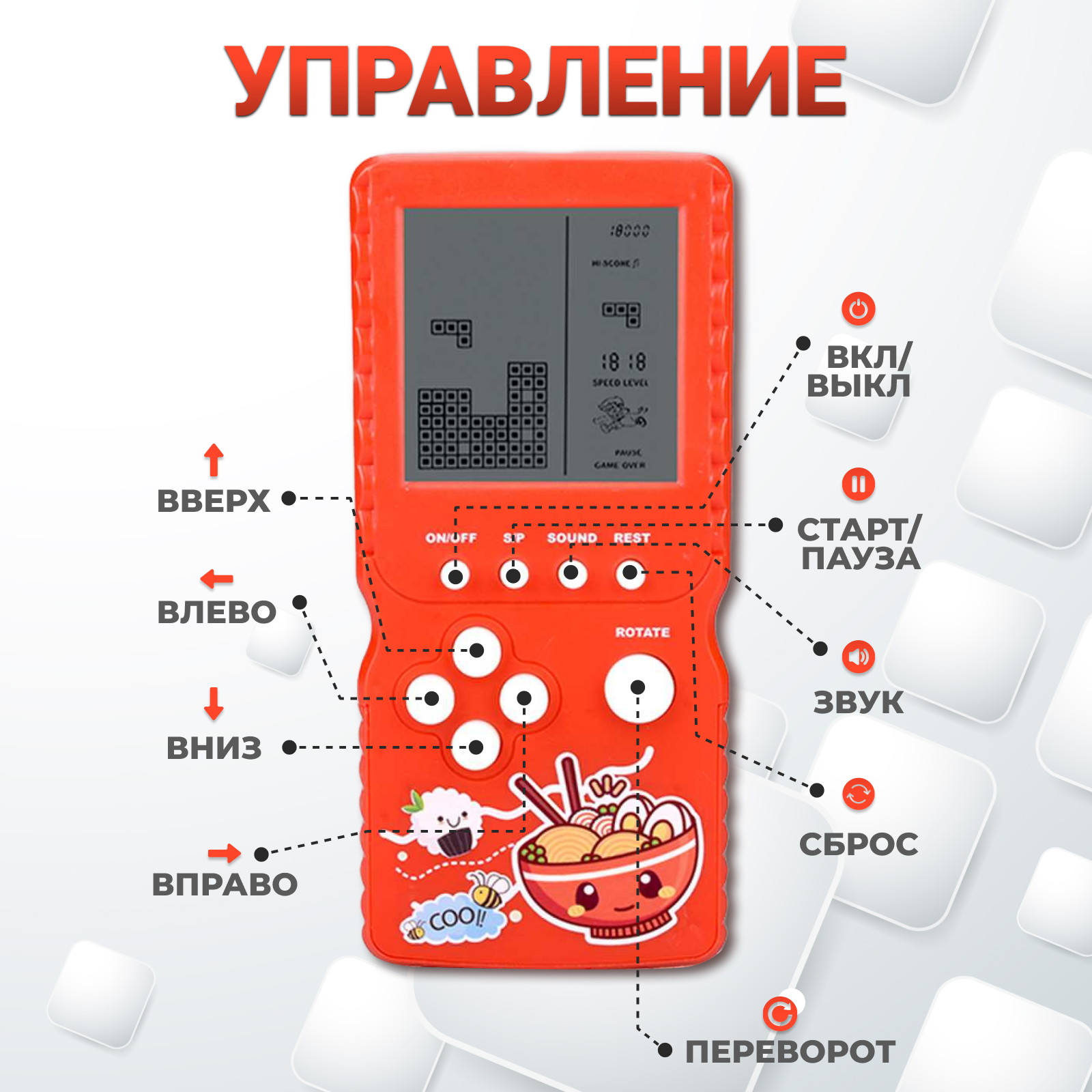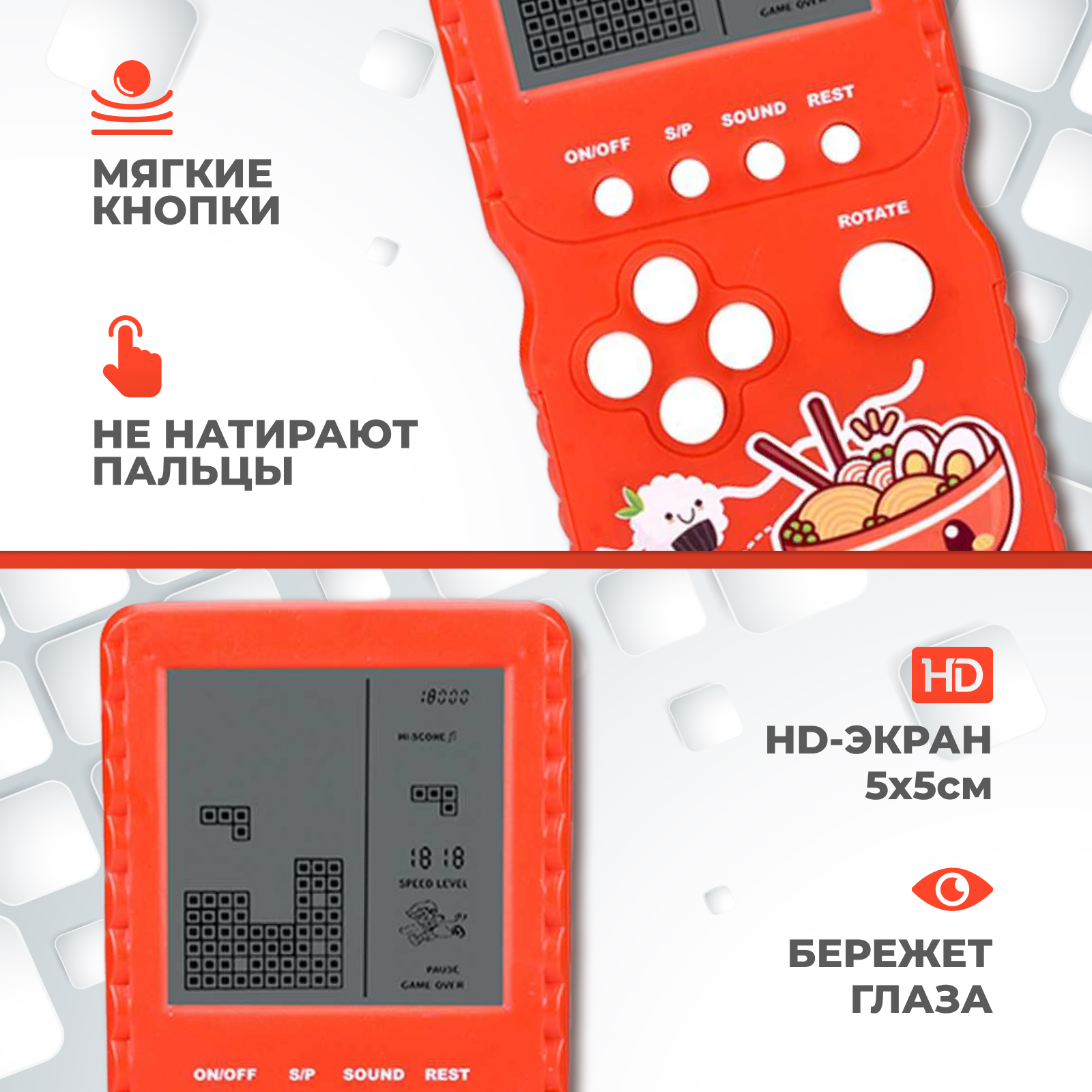 Тетрис электронный классический с большим экраном и мягкими кнопками. Детский рисунок.