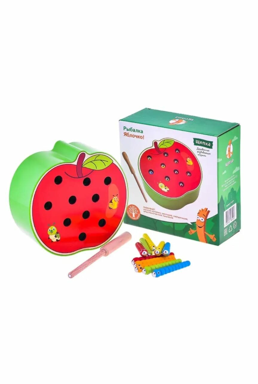 Развивающая игра магнитная рыбалка Веселые червячки в яблоке интересное: