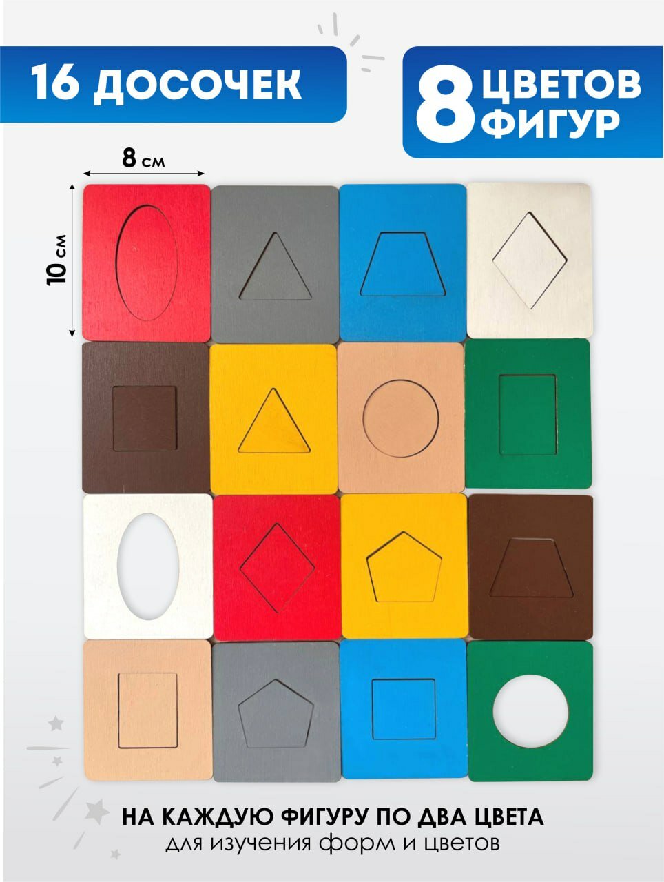 Развивающая игрушка для малышей деревянные досочки Сегена 16 шт. размер 10*8 см , деревянные игрушки Монтессори и геометрические фигуры. интересное: