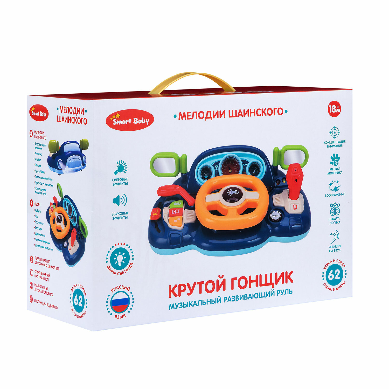 Музыкальный развивающий руль "Крутой гонщик" ТМ Smart Baby с голосовым помощником, мелодий В. Шаинского, свет, звук, JB0334019