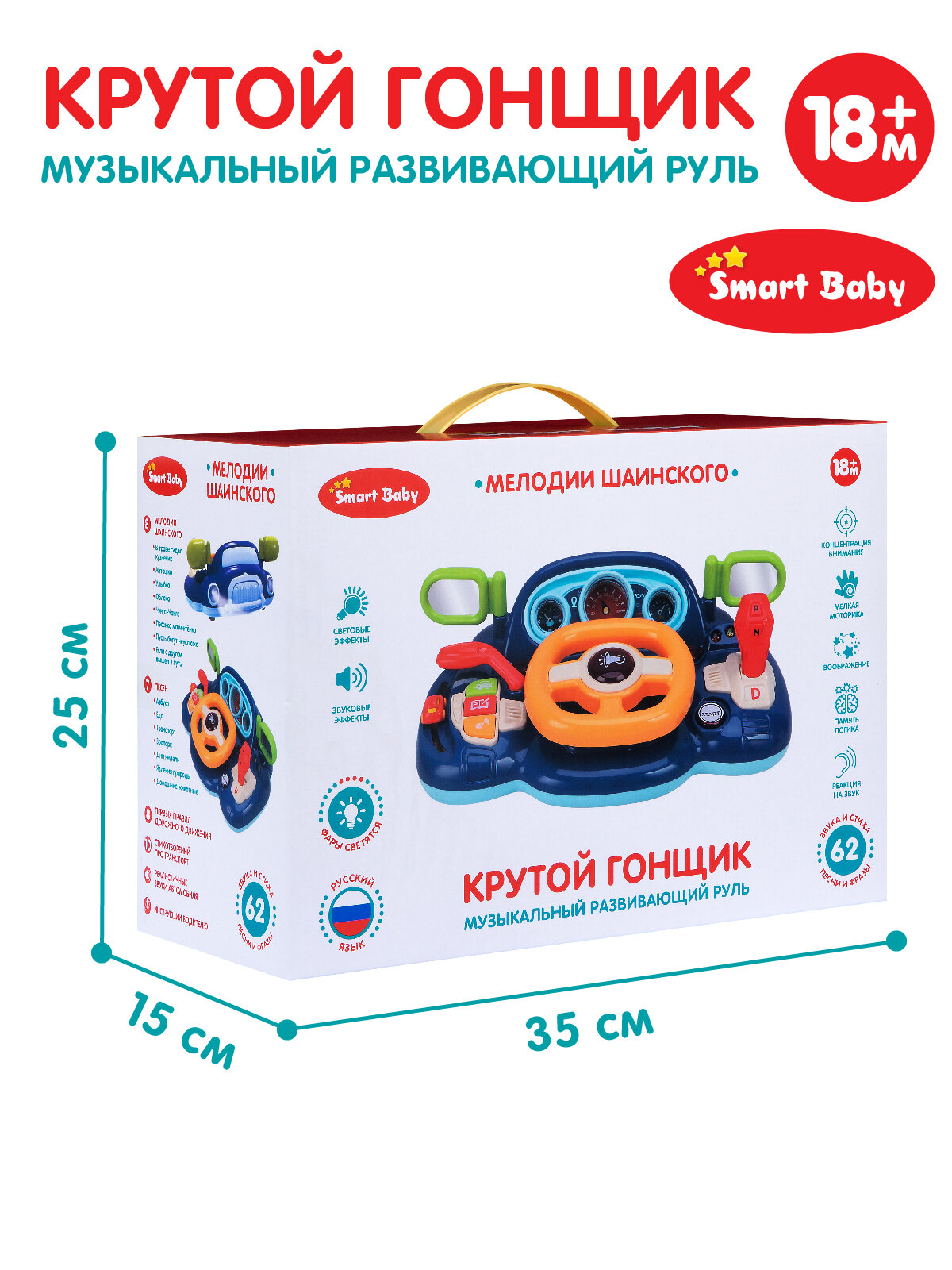 Купить Музыкальный развивающий руль "Крутой гонщик" ТМ Smart Baby с голосовым помощником, мелодий В. Шаинского, свет, звук, JB0334020