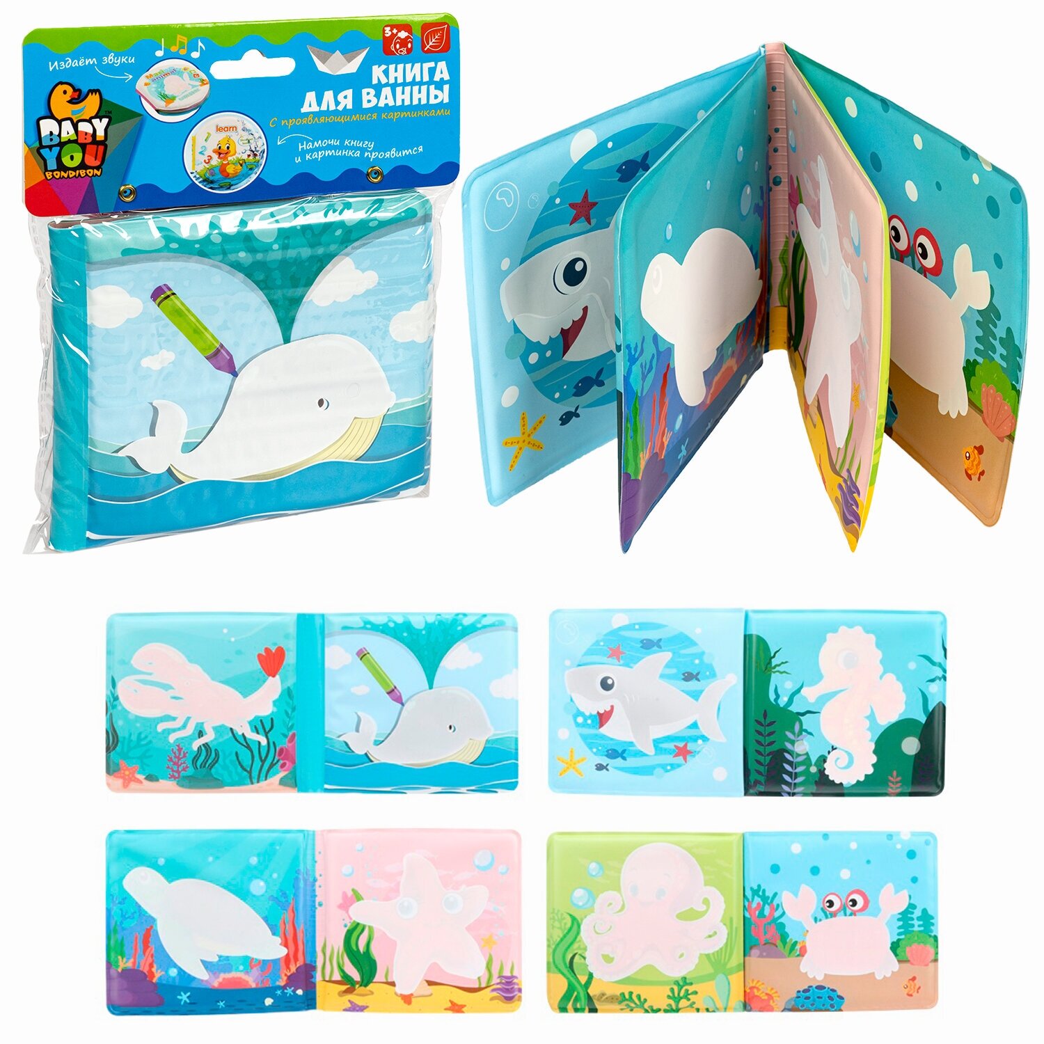 Книга для купания / морские обитатели / пищалка / проявляющиеся картинки / Baby You Bondibon интересное: