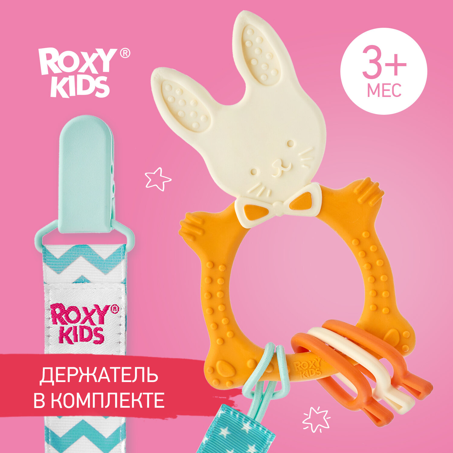 Прорезыватель ROXY-KIDS Bunny teether универсальный на держателе цвет оранжевый