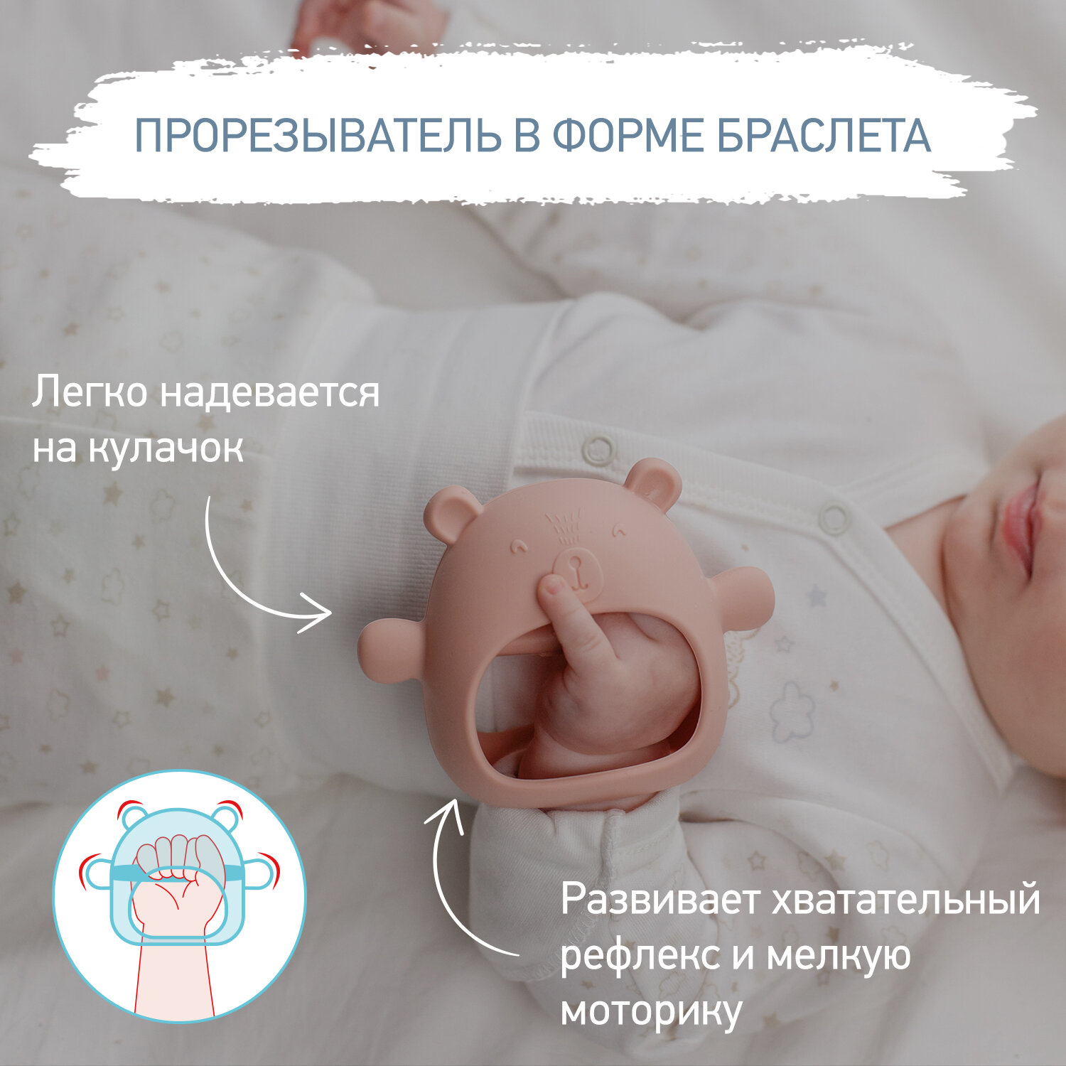 Прорезыватель для зубов на руку Мишка цвет розовый интересное: