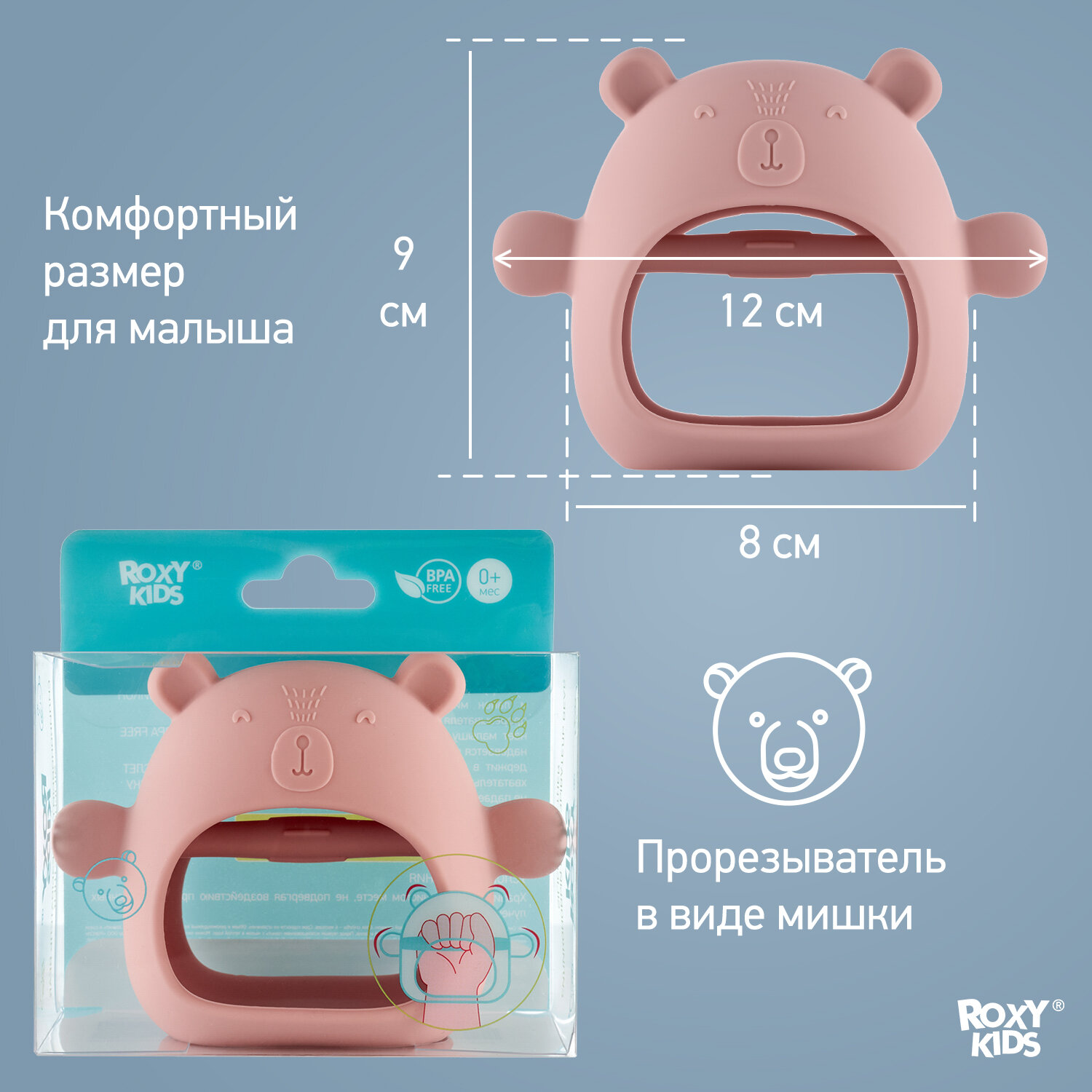 Прорезыватель Roxy-kids RST-003-P Мишка силиконовый розовый