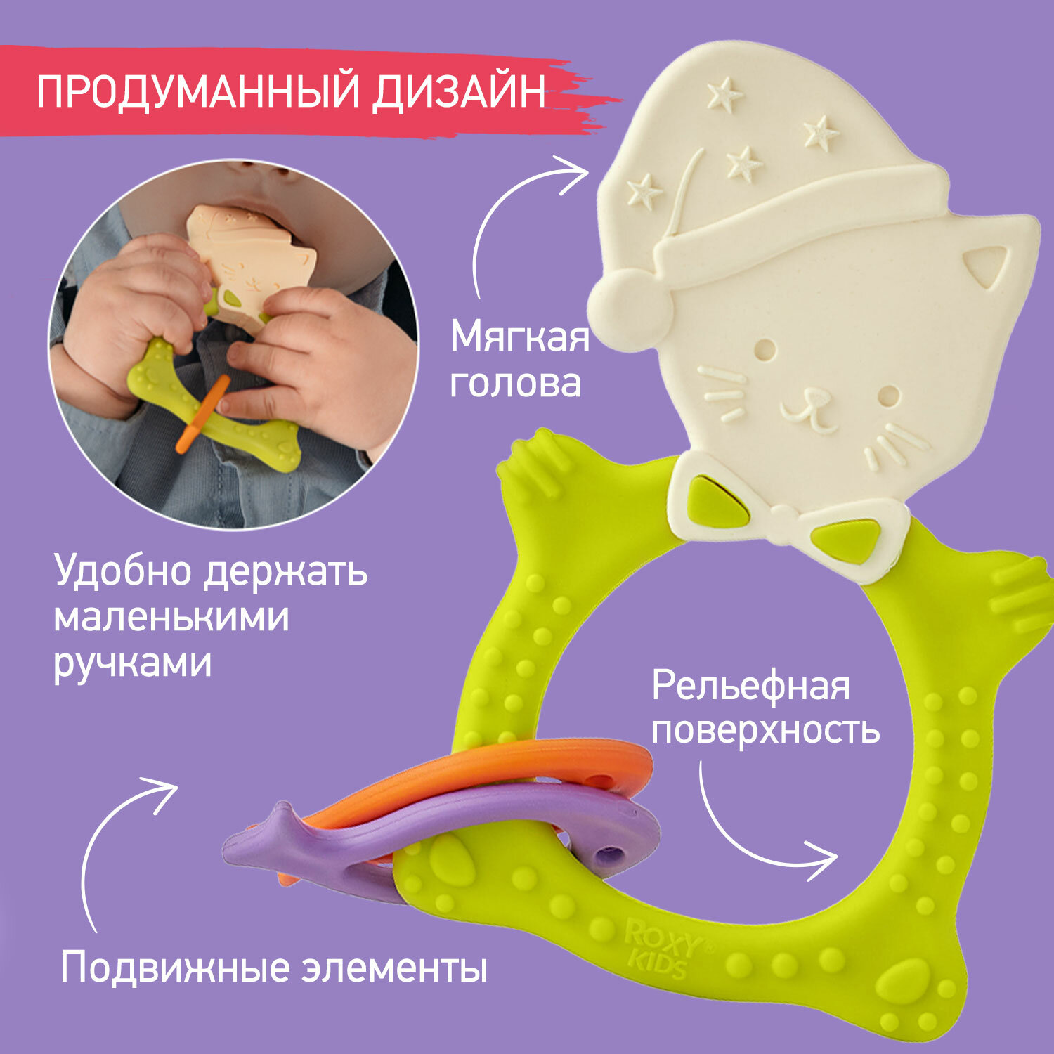 СохранитьПрорезыватель универсальный для малышей MEOW TEETHER от ROXY-KIDS, цвет зеленый интересное: