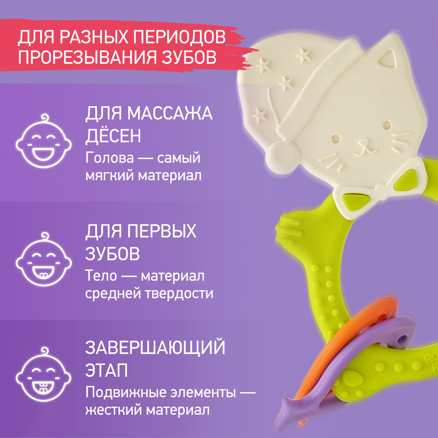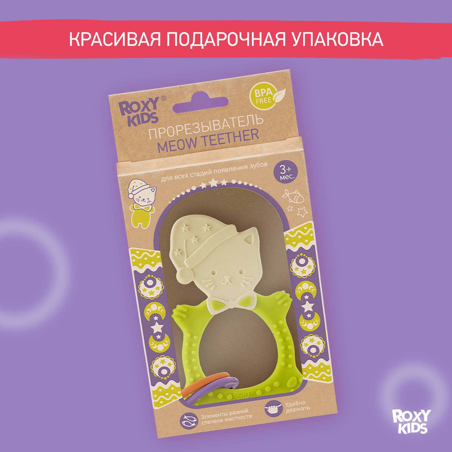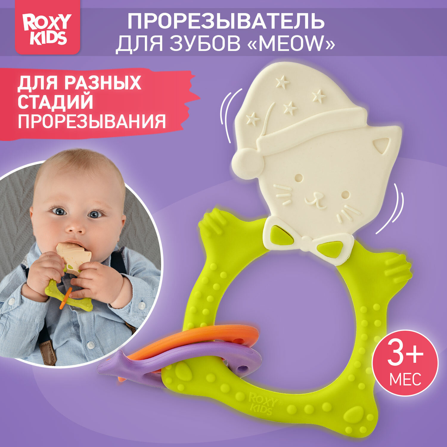 Прорезыватель универсальный для малышей MEOW TEETHER от ROXY-KIDS, цвет сиреневый