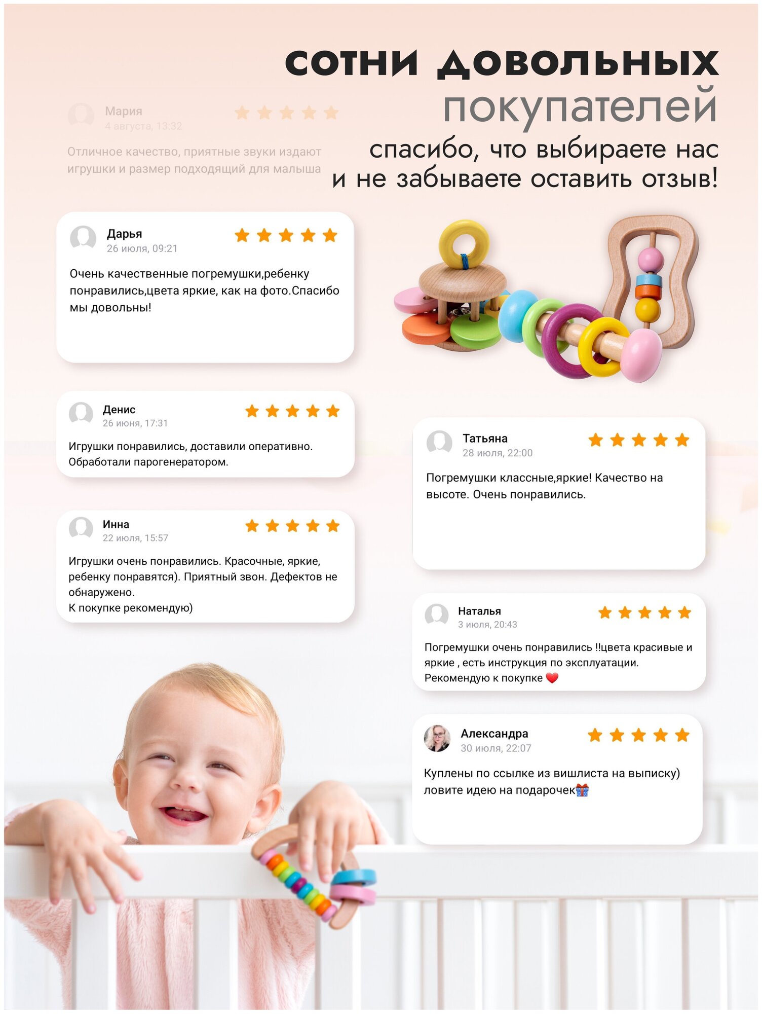 Ниже Вы можете прочитать отзывы на Набор погремушек, погремушки деревянные 4 штуки пастельные, ознакомится с подробными характеристиками, посмотреть интересные обзоры и фотографии на Набор погремушек, погремушки деревянные 4 штуки пастельные.