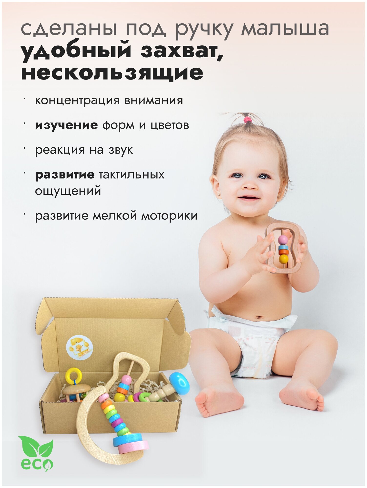 | Комплектация | 4 деревянные погремушки |