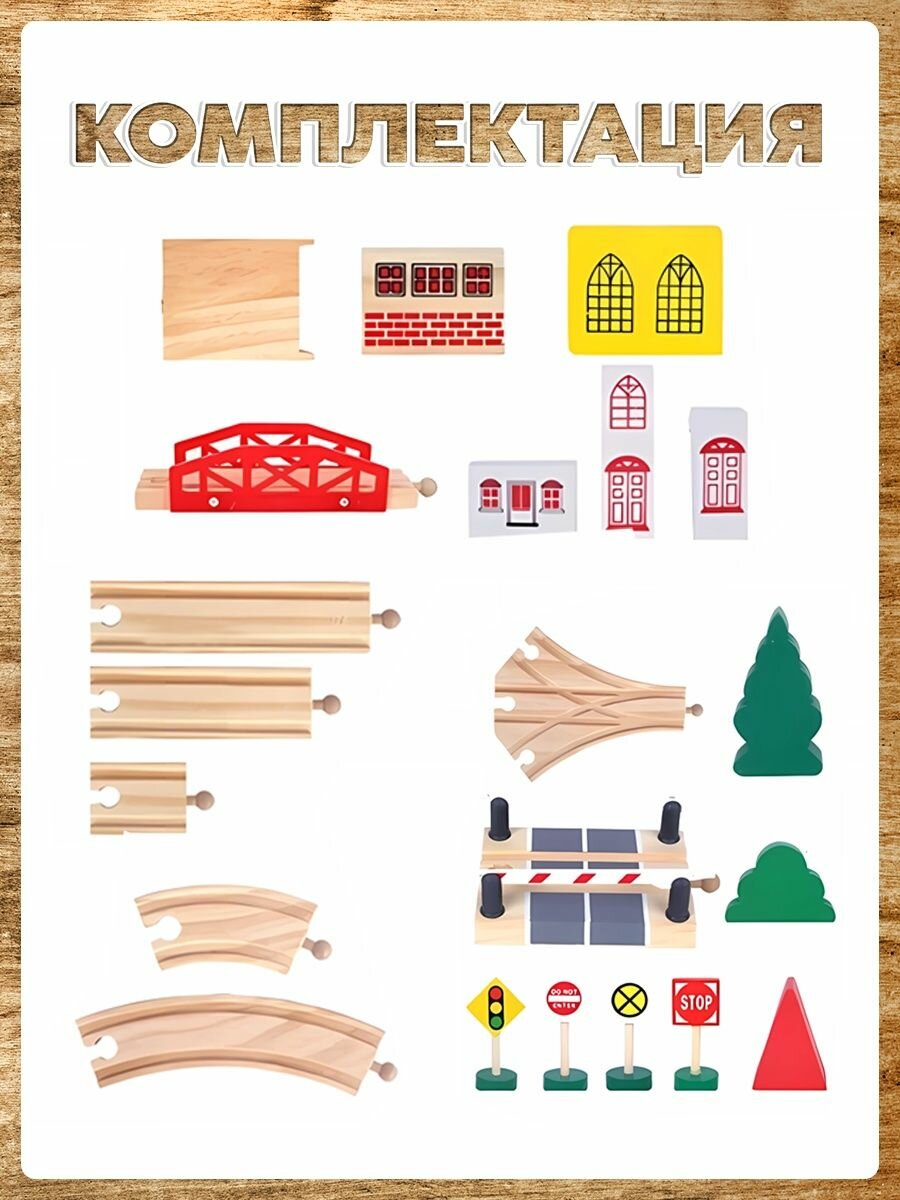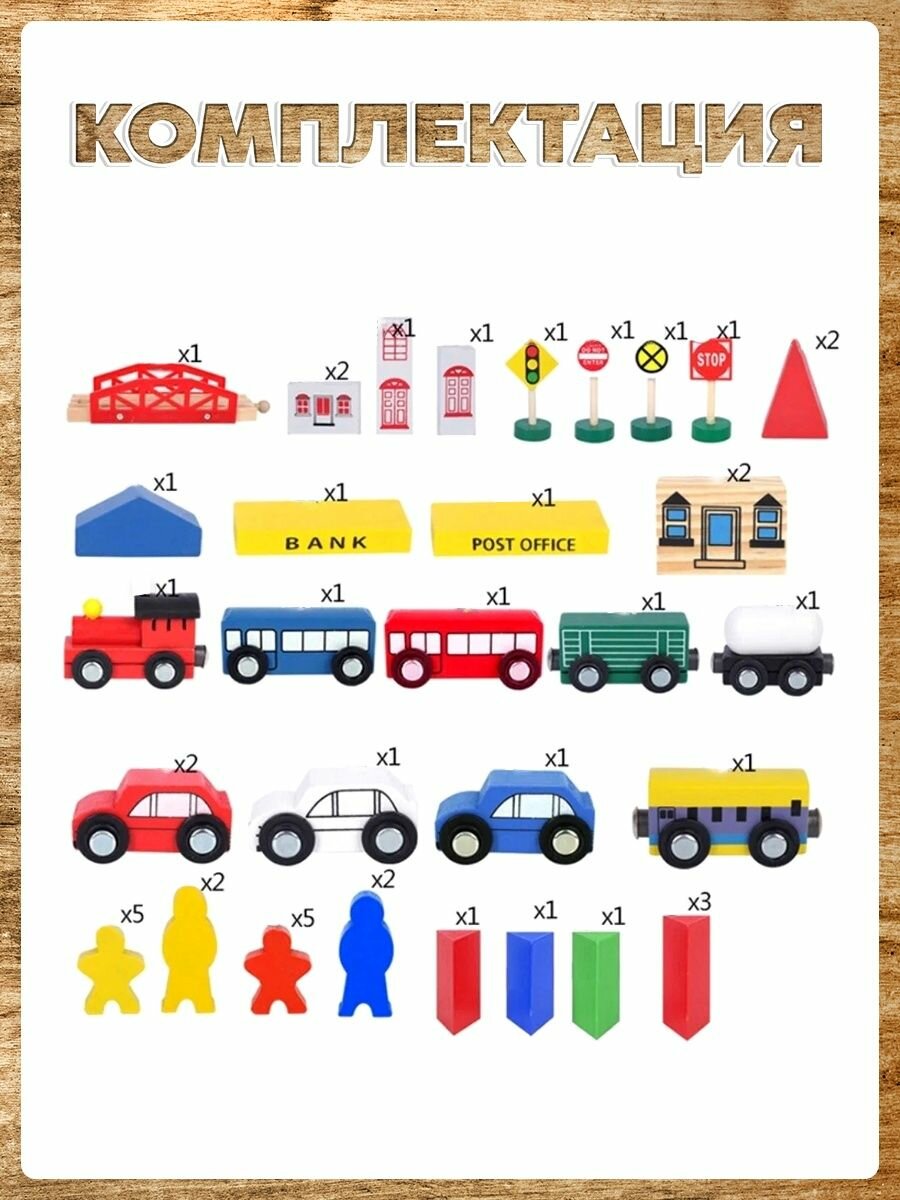Купить Деревянная железная дорога 100 деталей совместима с Икеа и Брио