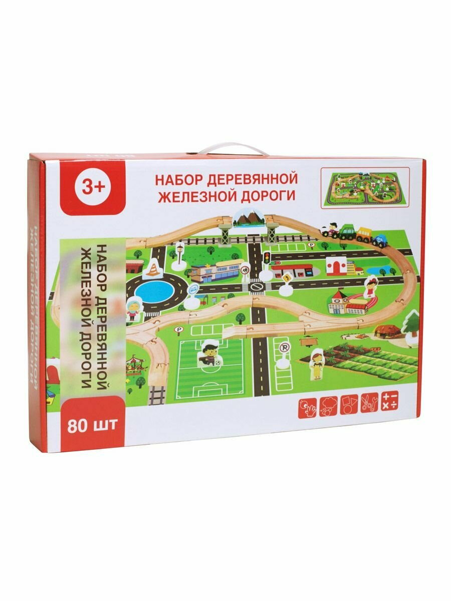 Деревянная железная дорога с поездом и вагонами для детей База Игрушек. 80 деталей интересное:
