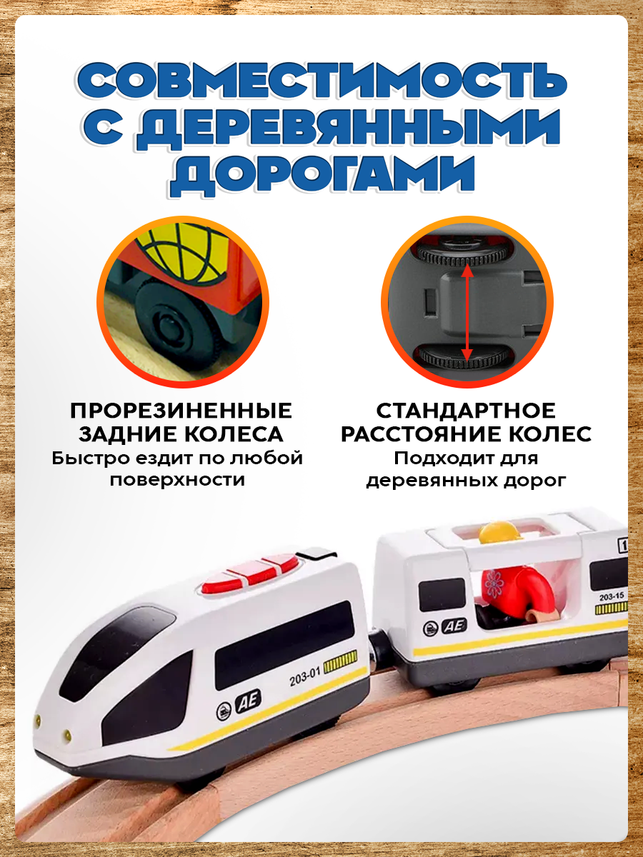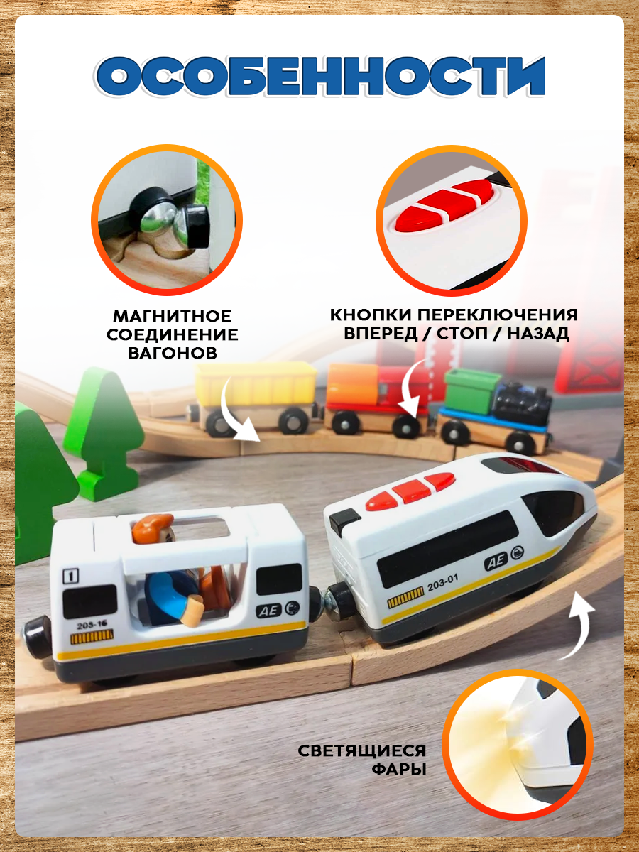 Электропоезд с вагонами для деревянной железной дороги икеа и брио на батарейках