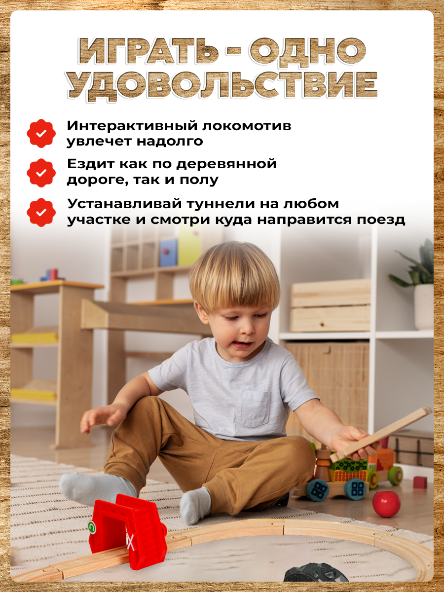 Паровозик на батарейках для деревянной железной дороги Икеа и Brio — поезд игрушка для детей с музыкой и светом
