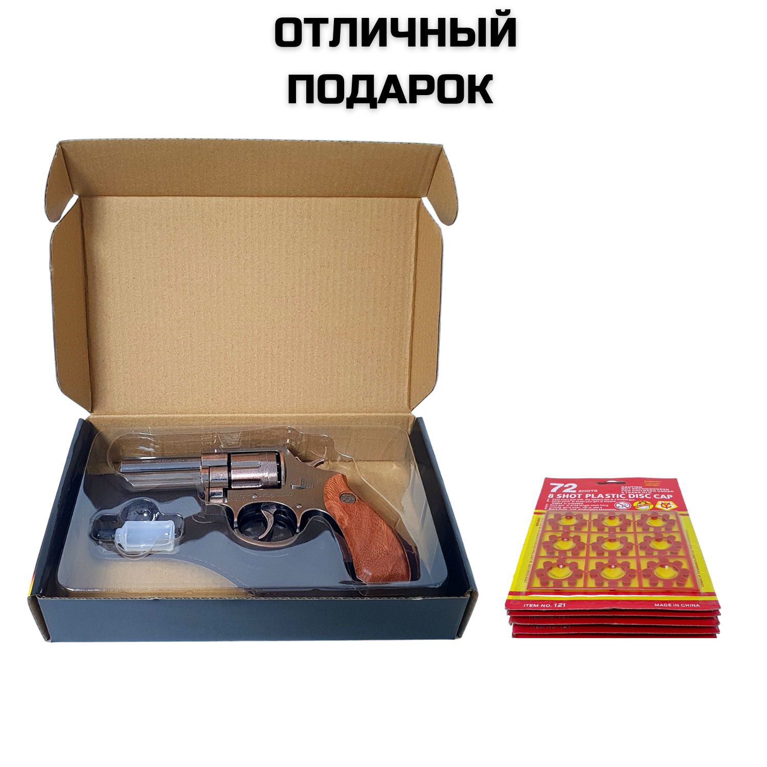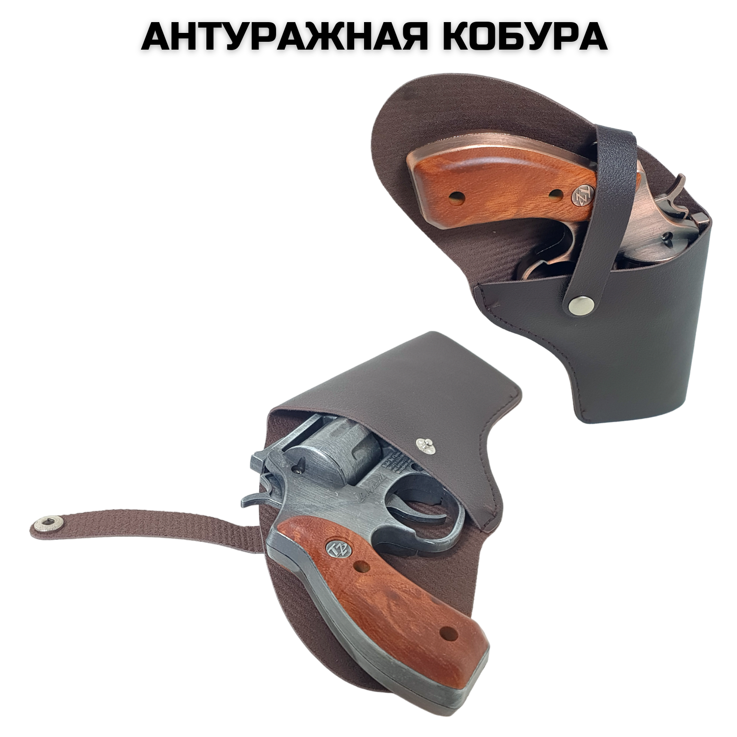 Купить Пистолет металлический с кобурой, пугач 360 пистонов в комплекте, коричневый