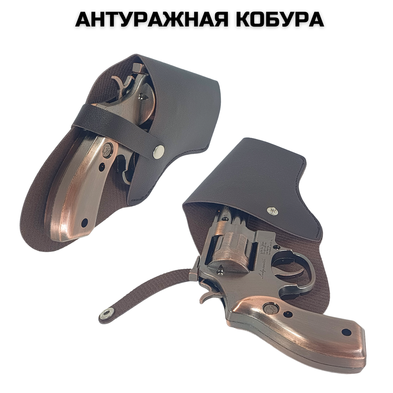 Пистолет металлический с кобурой, пугач 360 пистонов в комплекте, коричневый