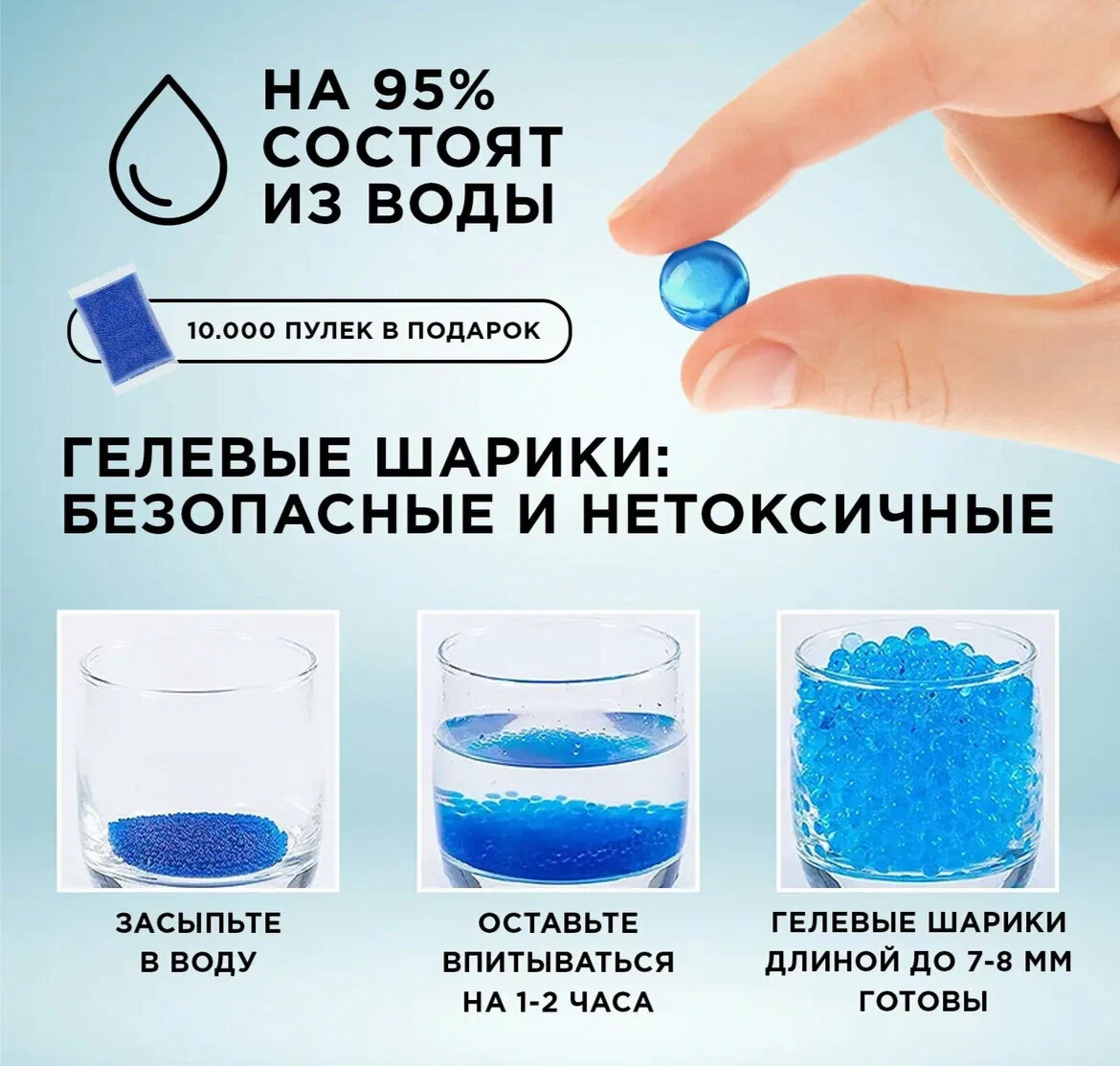 | Тип боеприпасов | гидрогелевые шарики / мягкие пули |