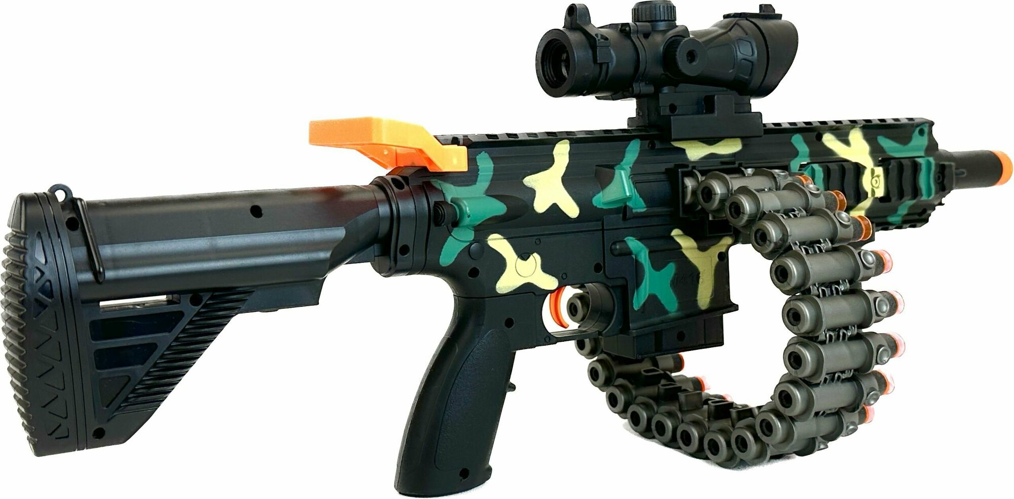 | Тип боеприпасов | гидрогелевые шарики / мягкие пули / мягкие шарики / патроны / пули / ракеты |