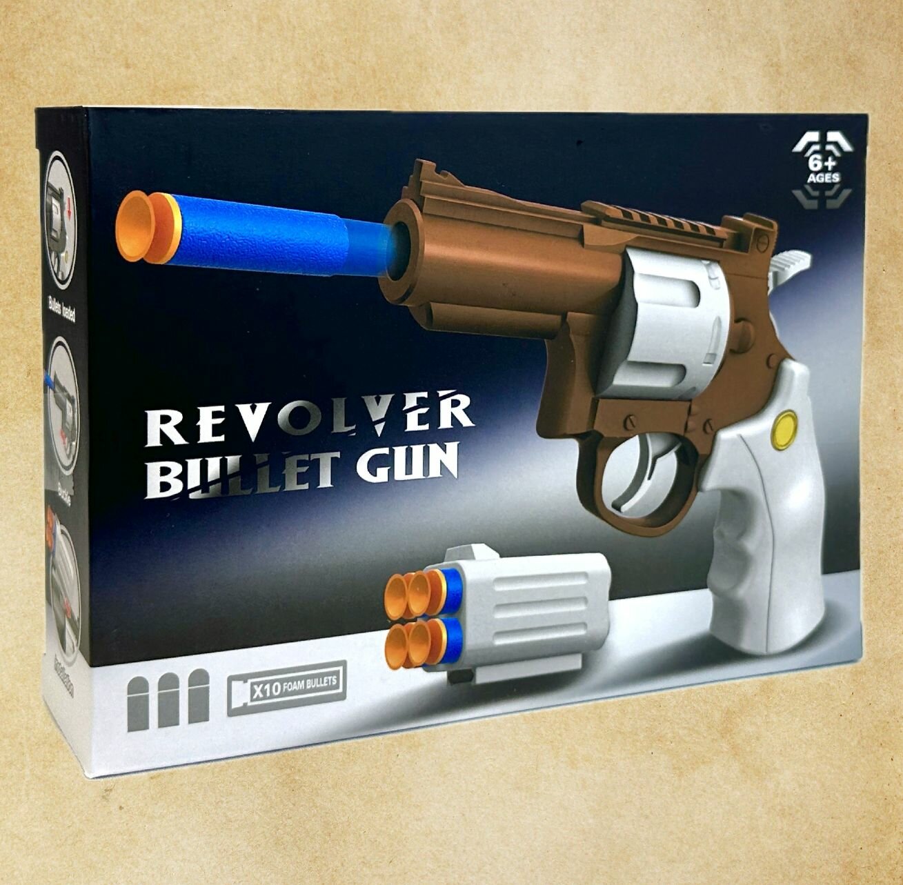 Ниже Вы можете прочитать отзывы на Пистолет Revolver Bullet Gun, револьвер с мягкими пулями, обойма для патронов, детское оружие, 20х14х4 см, ознакомится с подробными характеристиками, посмотреть интересные обзоры и фотографии на Пистолет Revolver Bullet Gun, револьвер с мягкими пулями, обойма для патронов, детское оружие, 20х14х4 см.