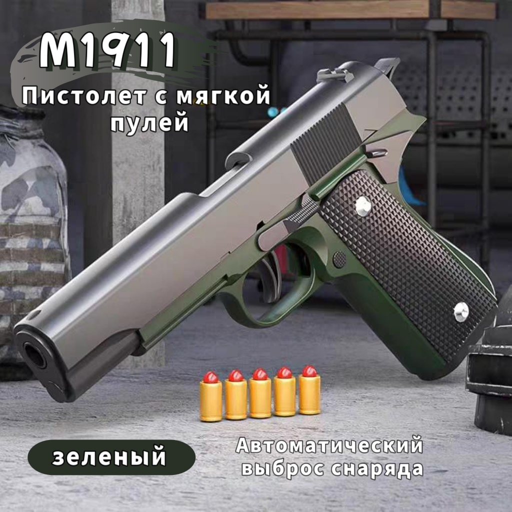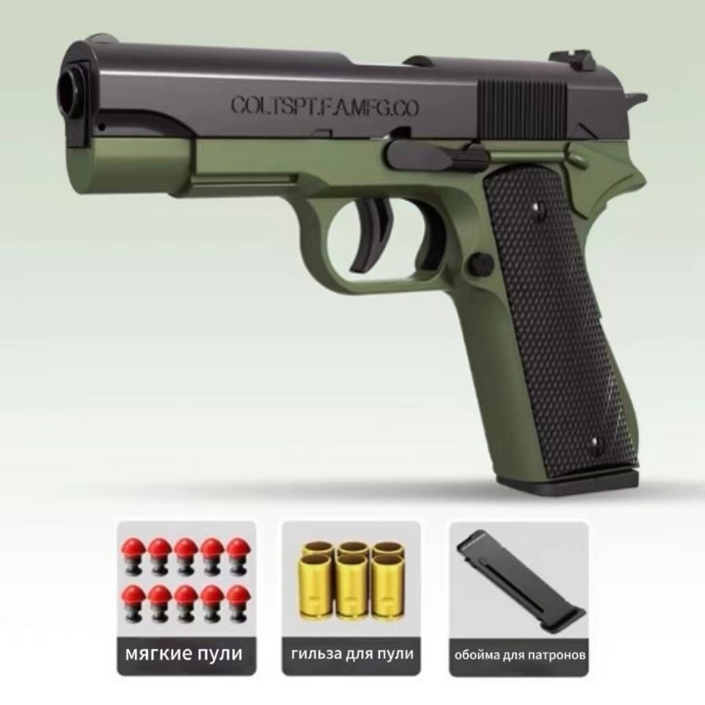 Пистолет автоматический с пульками Colt 1911 зелёный, детское игрушечное оружие для мальчика интересное: